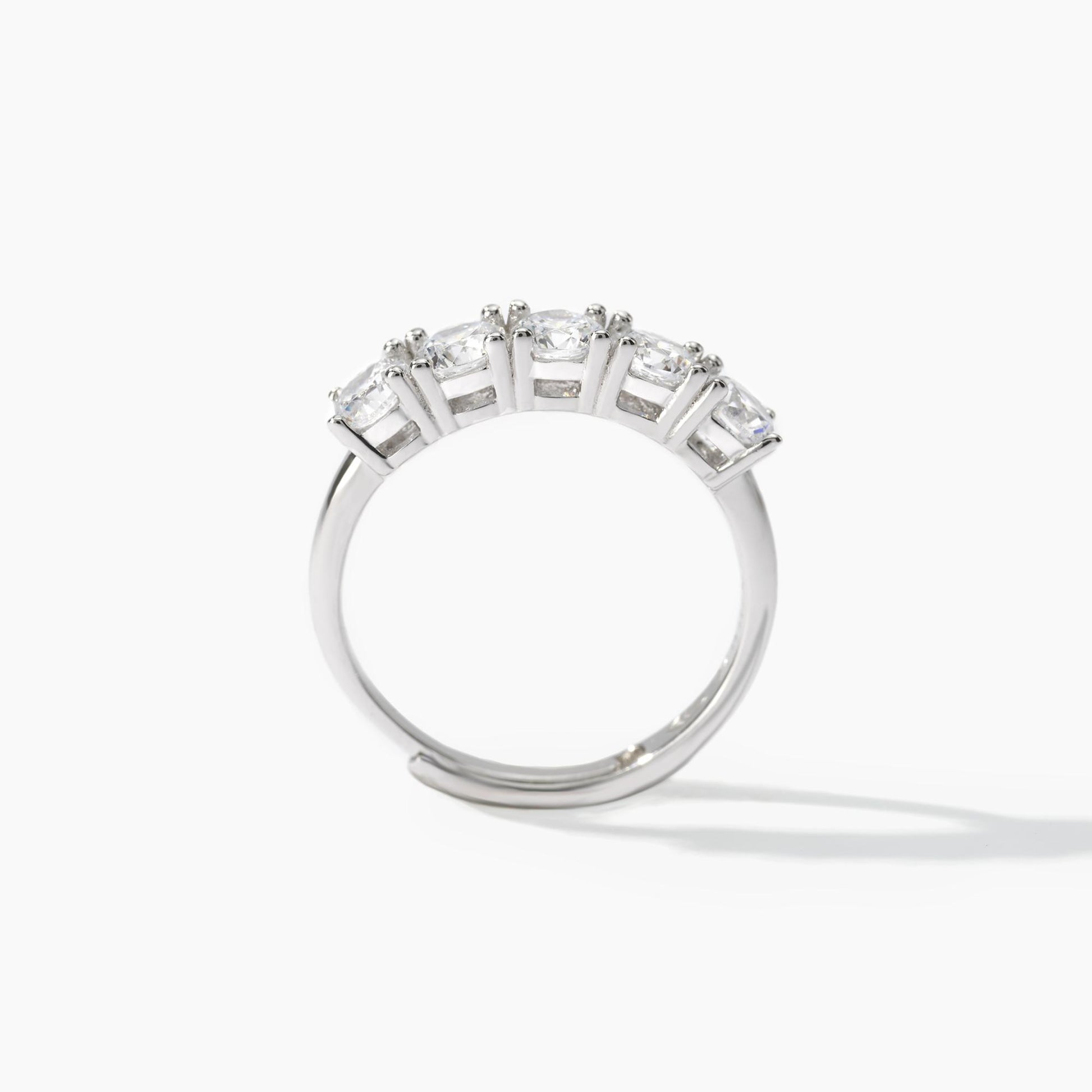 Anello veretta in argento con cinque zirconi.