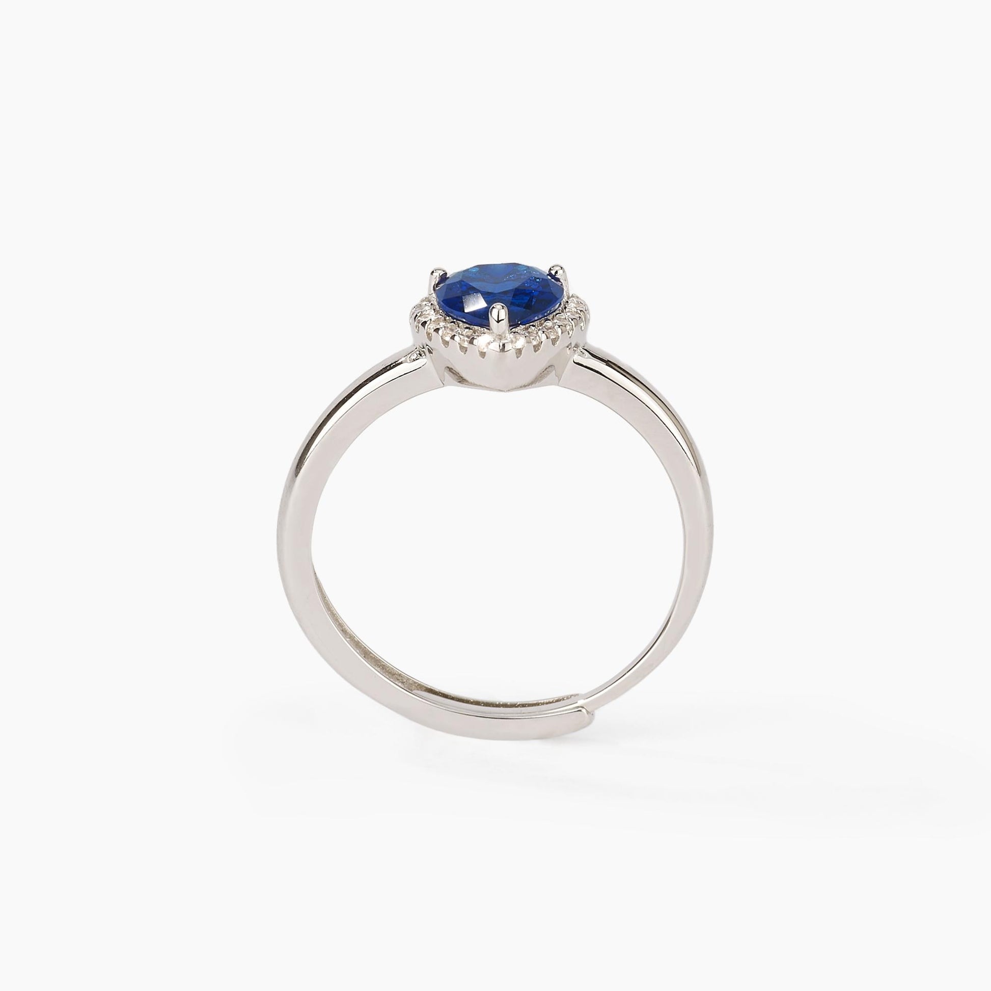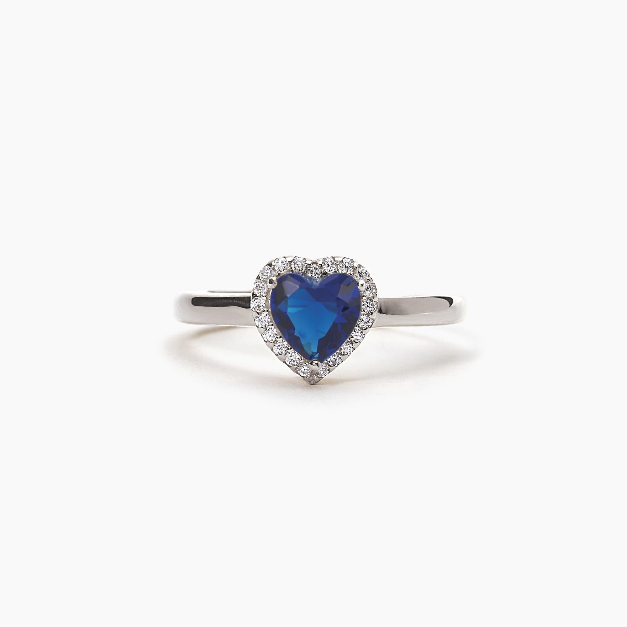 Anello in argento con cuore in zaffiro sintetico e zirconi.
