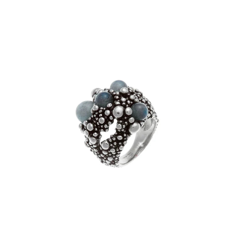 Riflessi di luna in un cielo stellato ispirano la collezione Via Lattea. I dettagli del gioiello, realizzato amano tramite fusione a cera persa, in abbinamento alla labradorite, regalano un grande effetto di luminosità che si adatta allo stile di ogni donna. Emozioni d'argento.