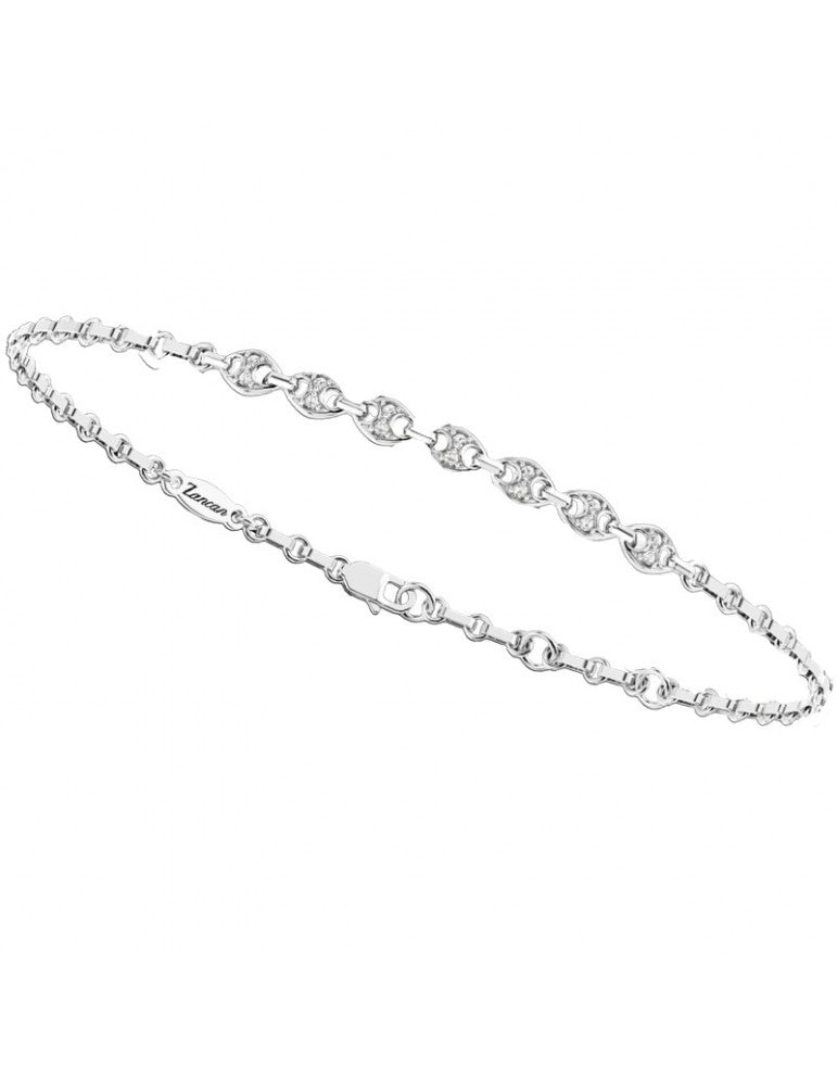 Bracciale Zancan da Uomo in Oro 18KT della Collezione Insignia, con una maglia morbida intervallata da una mezza catena marinara con diamanti bianchi incastonati. Prodotto interamente realizzato in Italia.