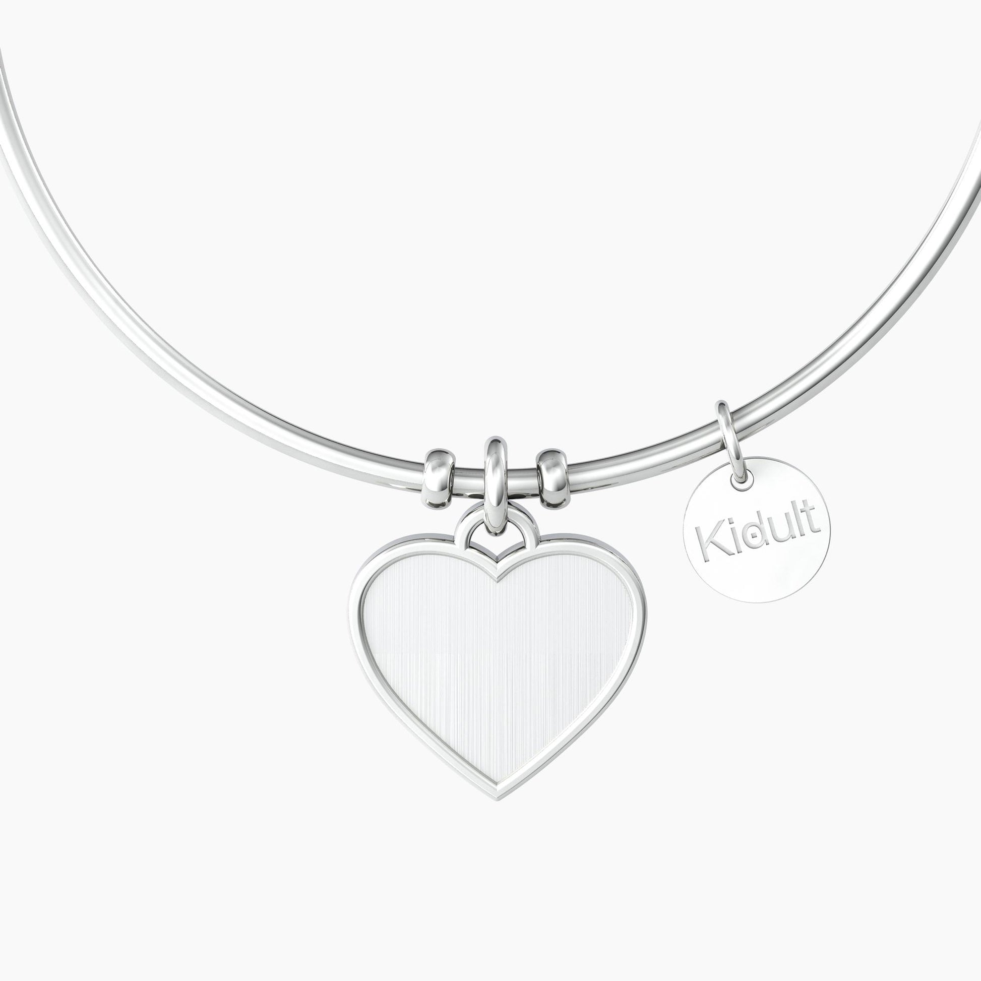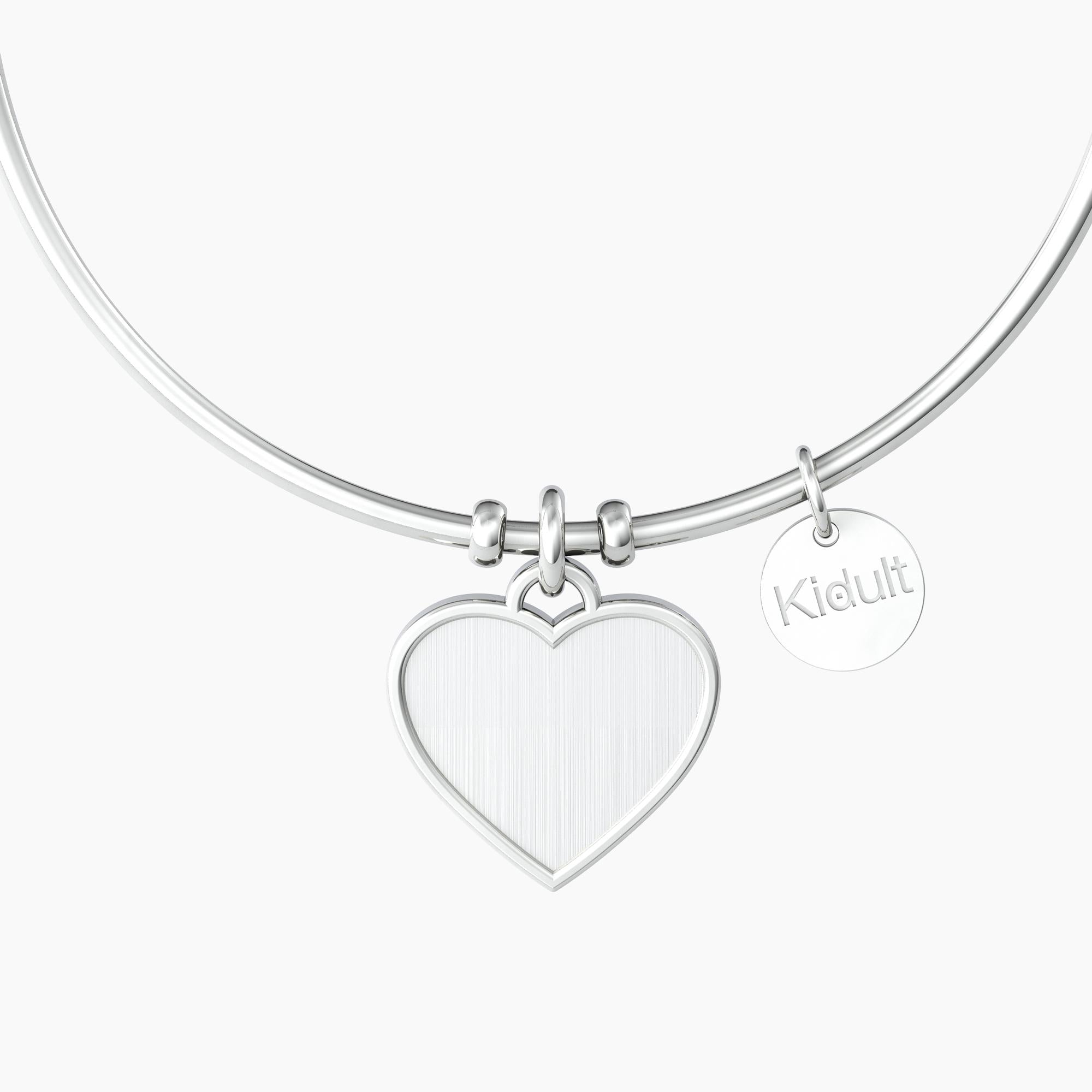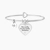 Bangle in acciaio con ciondolo satinato a forma di cuore con rifinitura lucida, cristallo e scritta "Mia sorella ha una sorella fantastica".