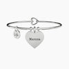 Bangle in acciaio con ciondolo satinato a forma di cuore con scritta "Mamma".