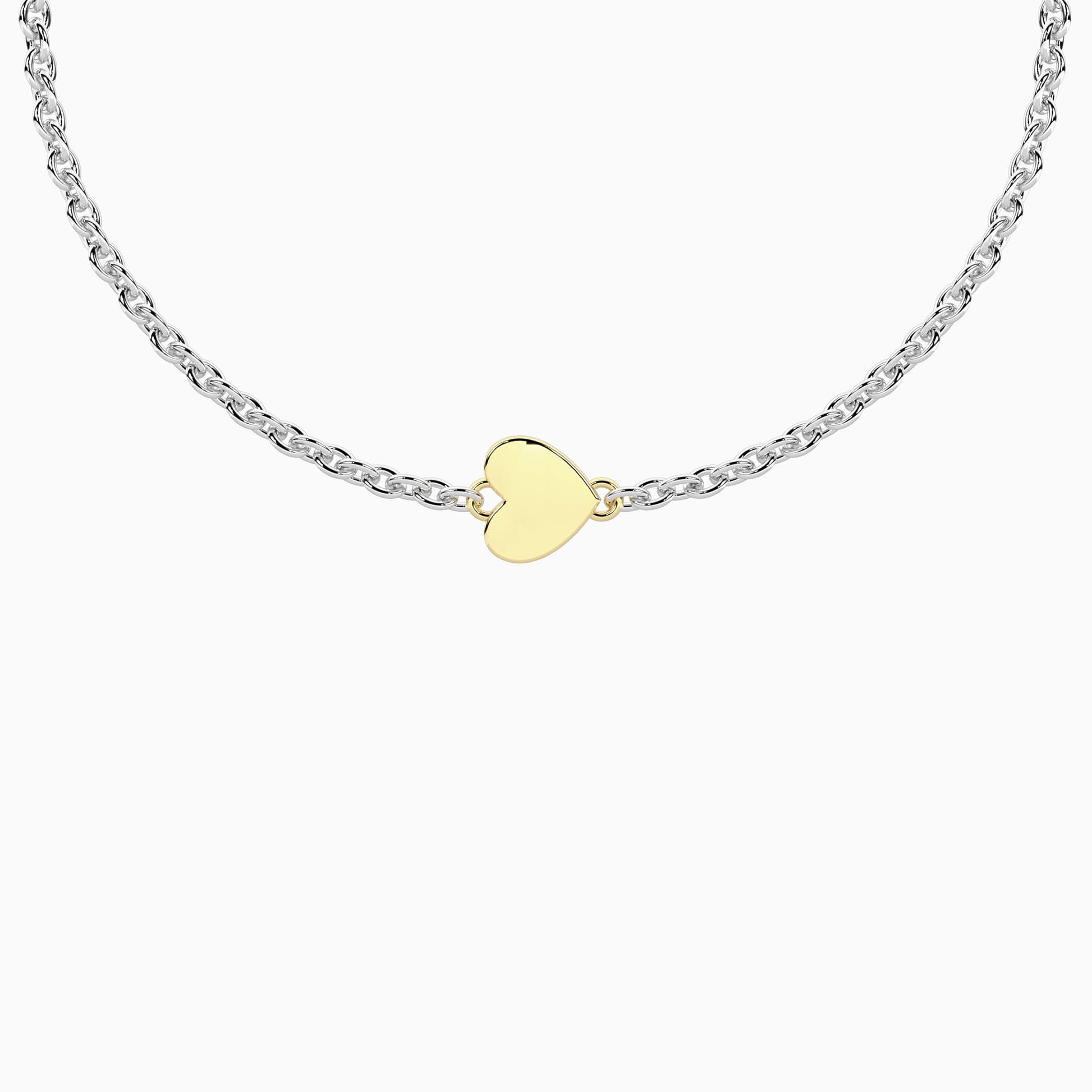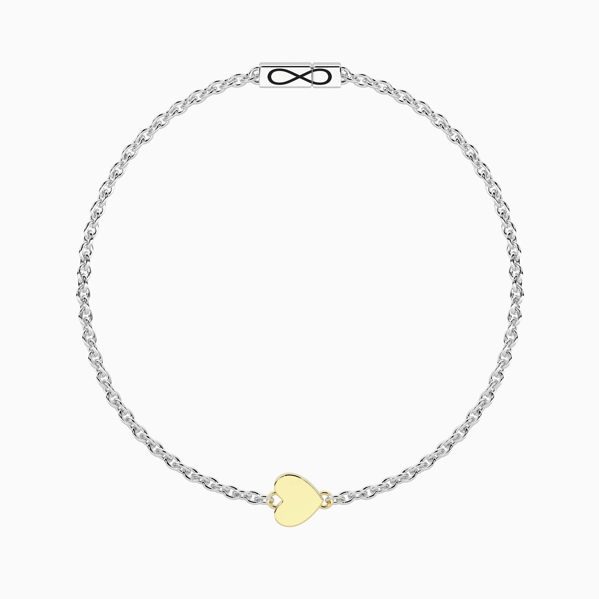 Bracciale unisex con catena forzatina in acciaio. Simbolo cuore in oro 9kt e chiusura non-reversibile con simbolo dell'infinito.