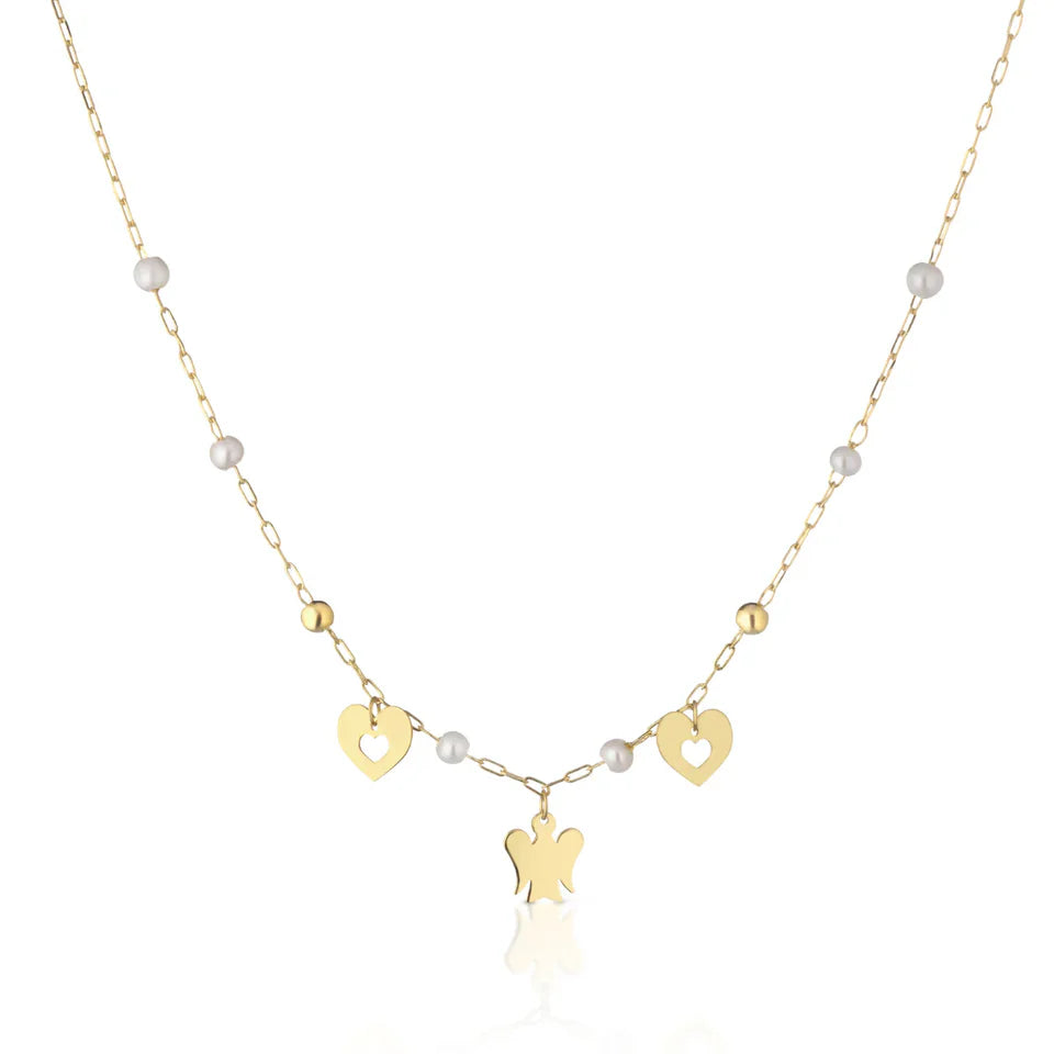 Collana Oro Con Perle Cuori e Angelo Roberto Giannotti