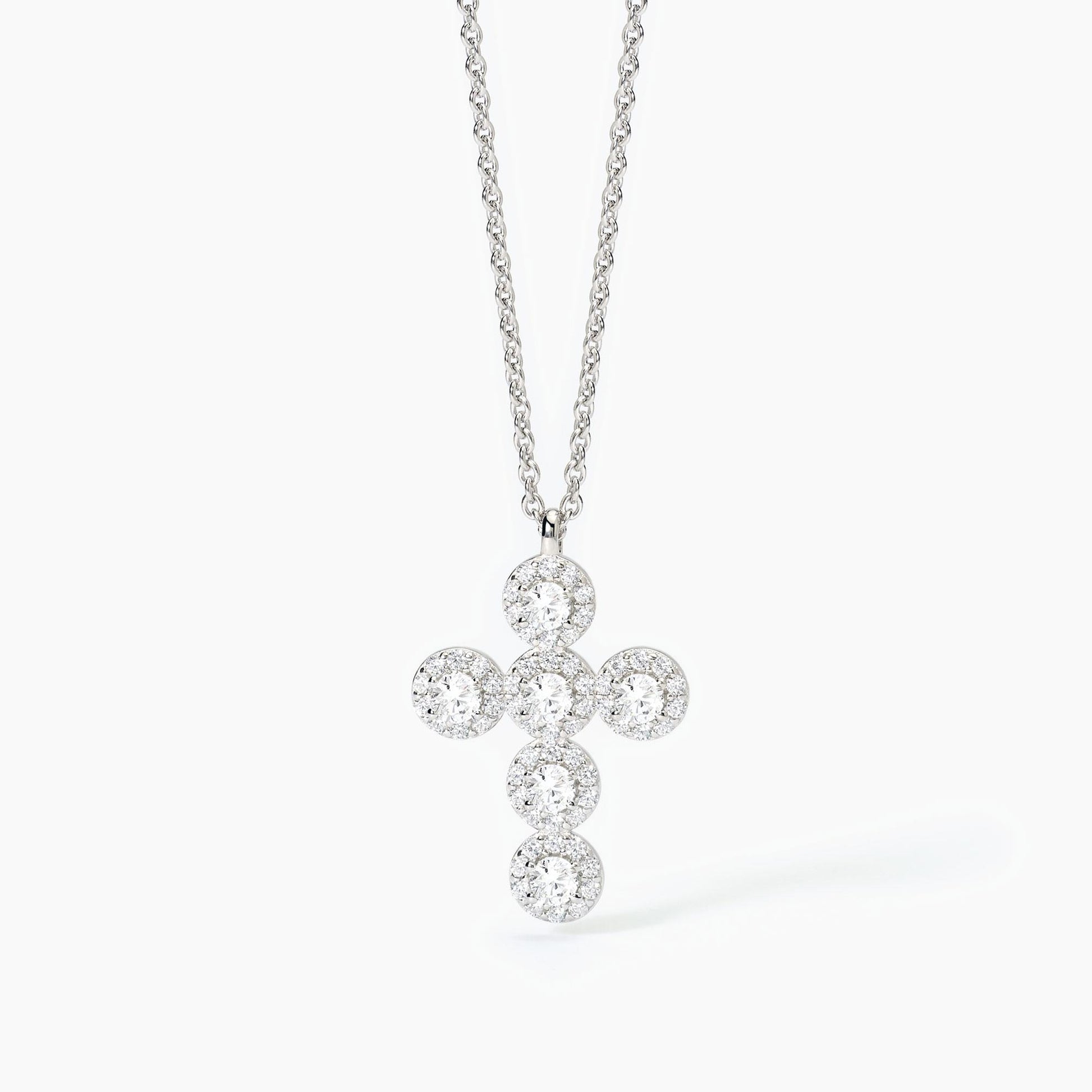Collana regolabile da donna in argento rodiato con catena forzatina, ciondolo croce e zirconi bianchi.