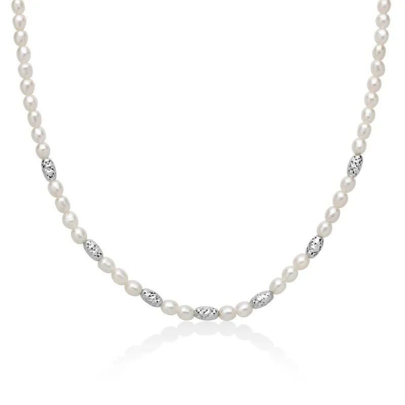 Collana Pepite di Perle Alternata da Elementi Diamantati in Argento Miluna