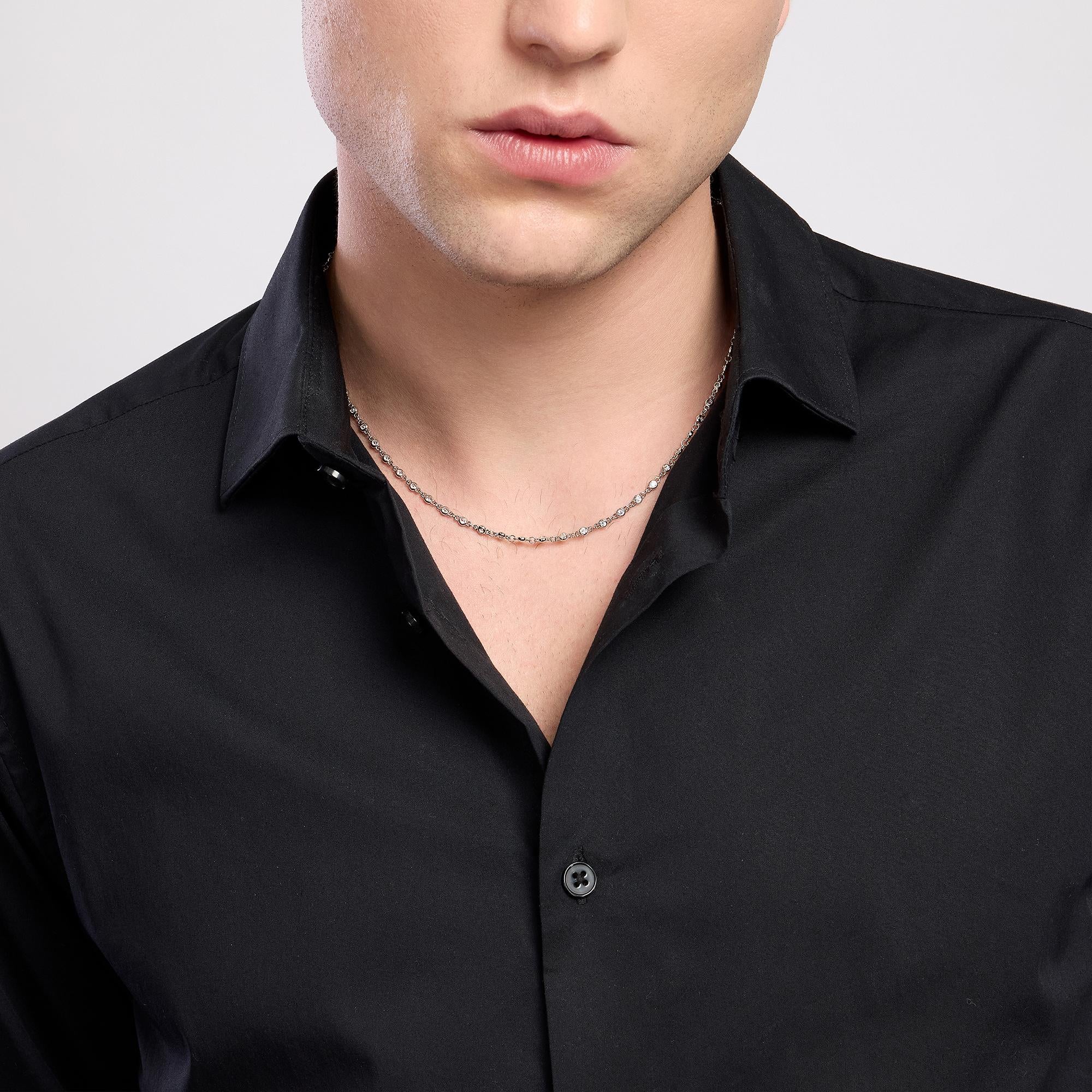 Collana da uomo in argento rodiato con zirconi bianchi.