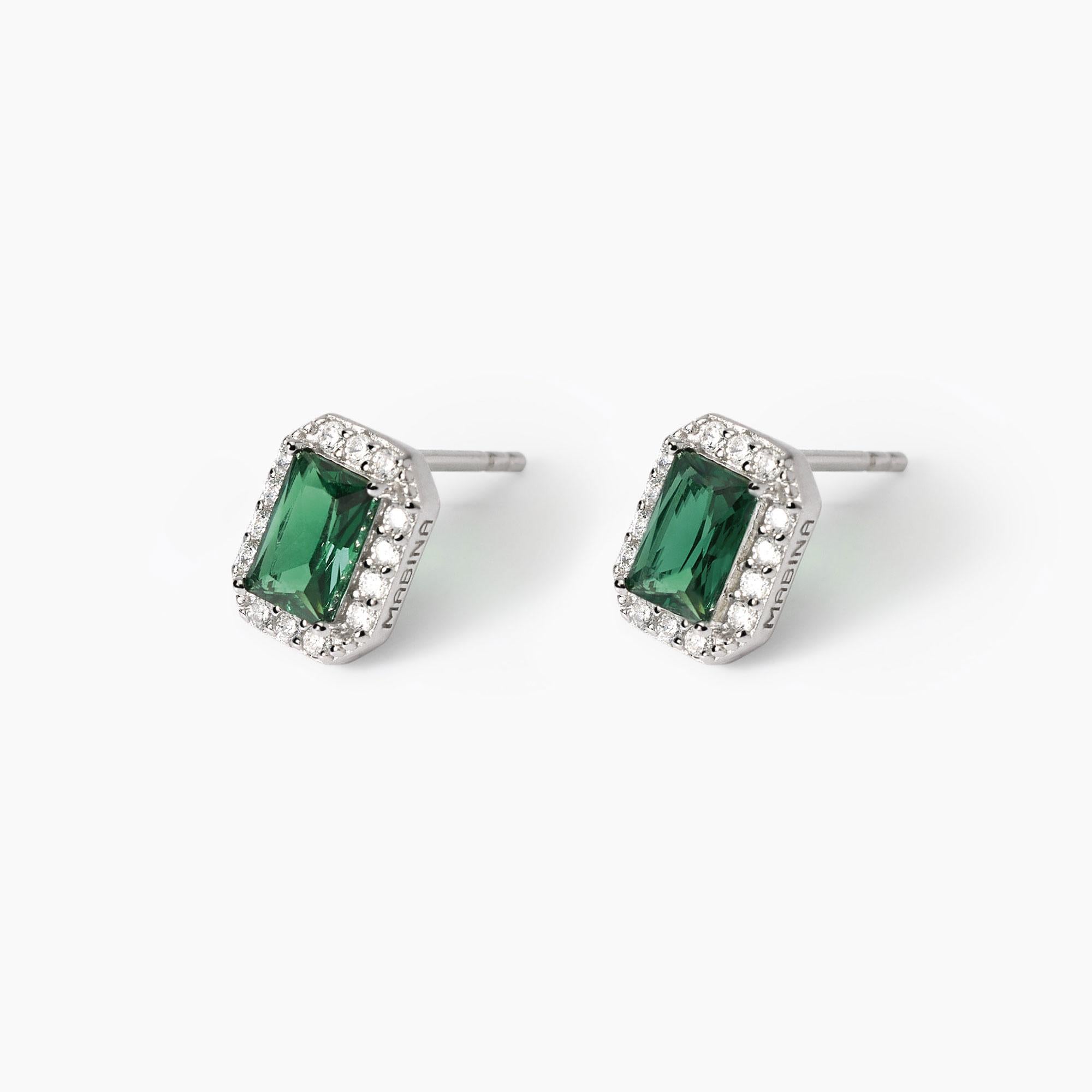 Orecchini a Lobo con Zirconi e Smeraldo Sintetico Mabina