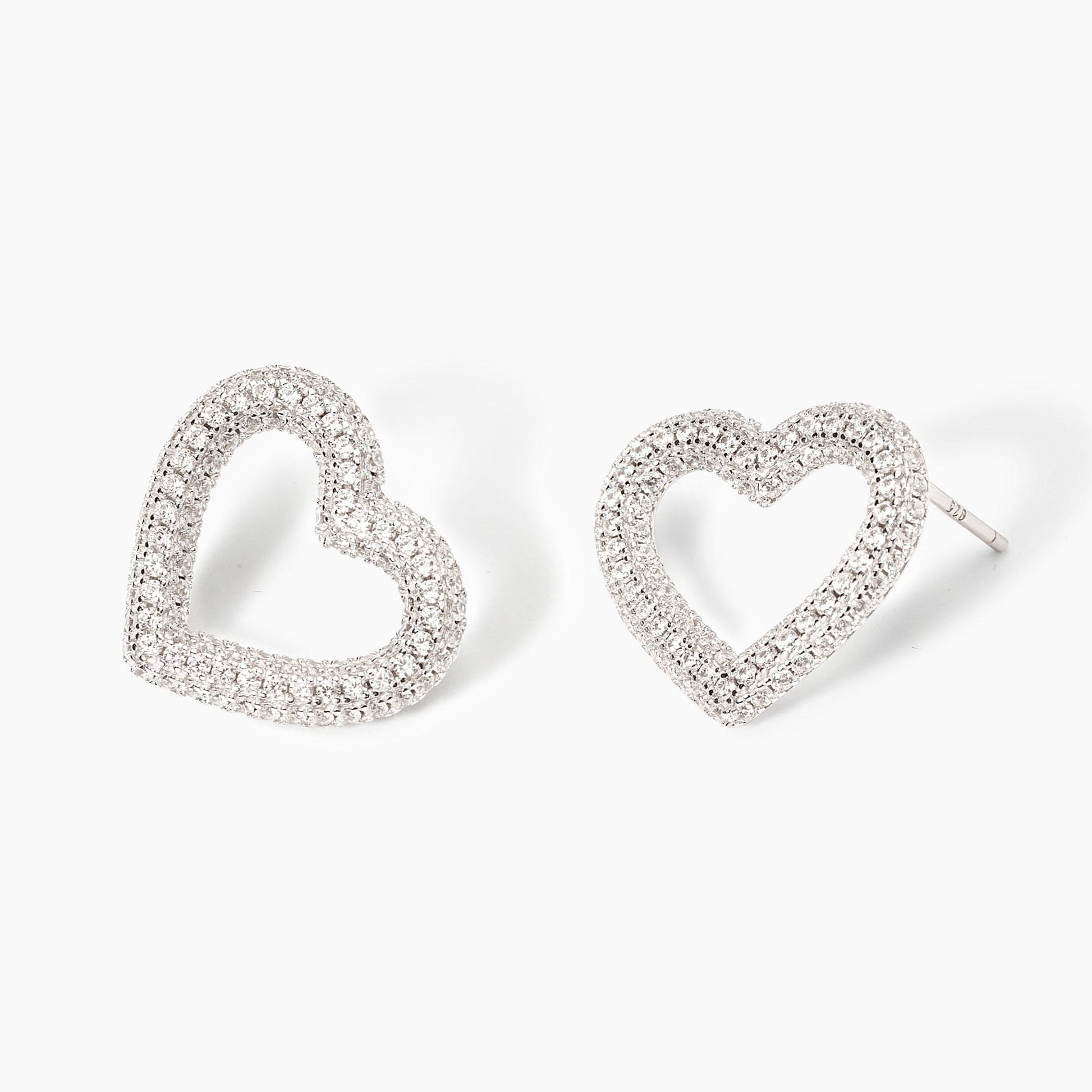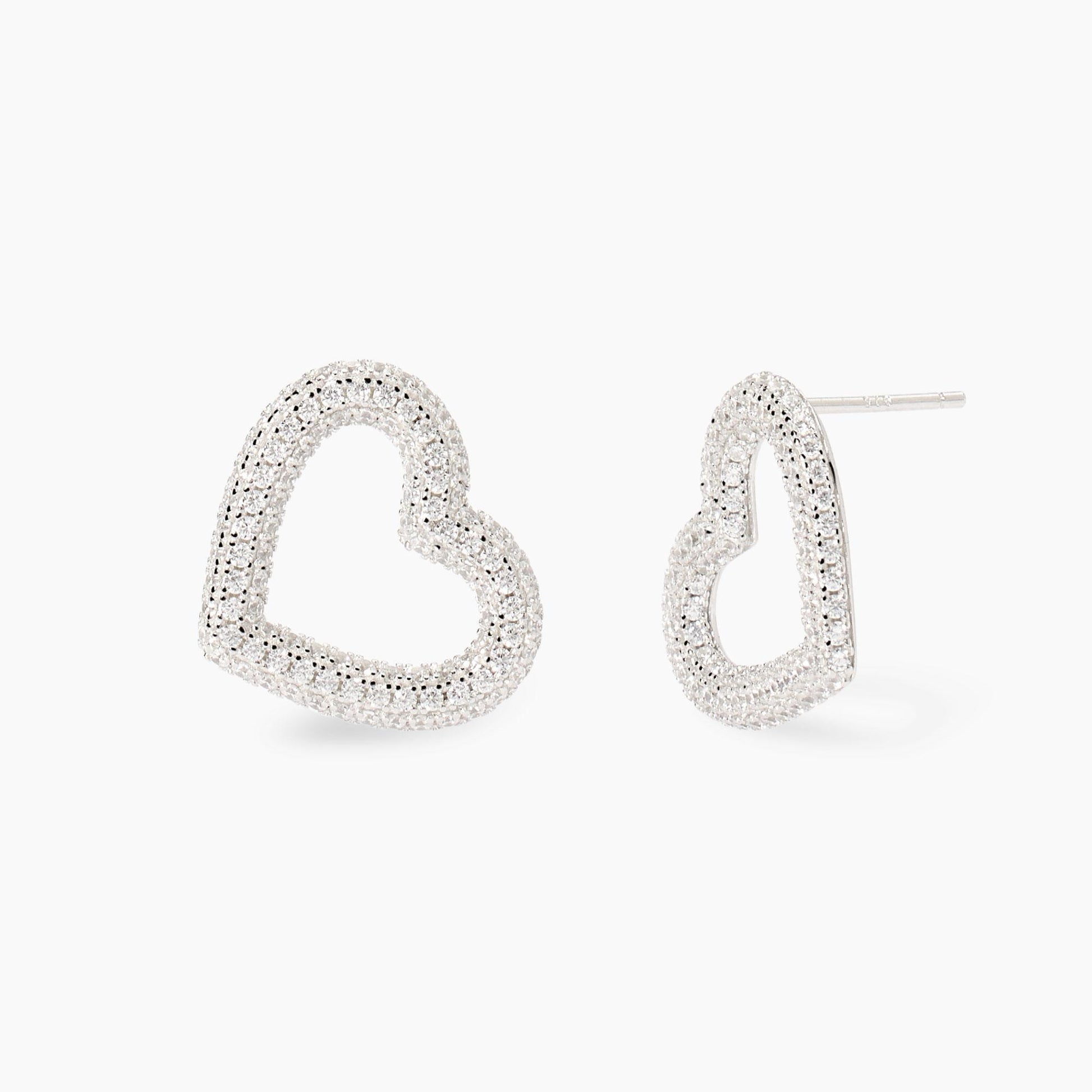 Orecchini a cuore in argento rodiato e zirconi.