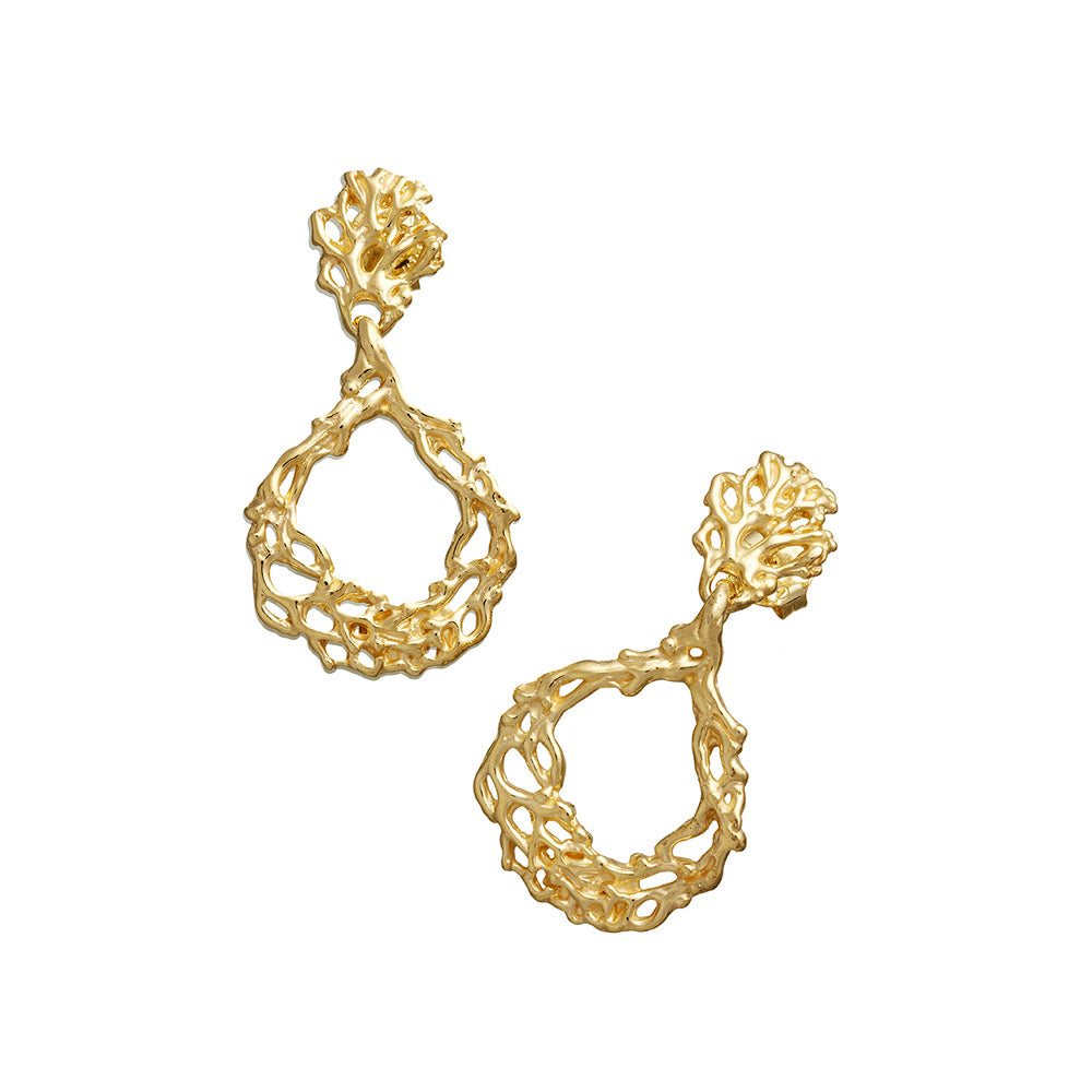 Luminosi ed elegantissimi: questi orecchini a pendente sviluppano l'ispirazione marina di Giovanni Raspini grazie ad uno stile assolutamente contemporaneo. Realizzati in argento dorato, completamente a mano, in house.