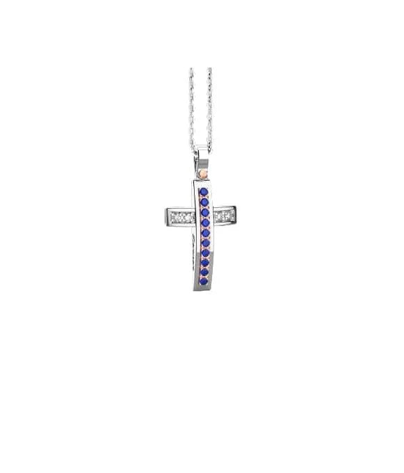 Collana Zancan in Oro Bianco 18KT con Croce, Zaffiri Blue e Diamanti Bianchi.