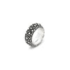 L'anello Petit Perlage è un capolavoro che celebra l’arte della fusione a cera persa. La sua raffinata lavorazione artigianale si distingue per il pavé di delicate sferette in argento brunito, finemente diamantate, che donano un gioco di luce unico e sofisticato. Realizzato a mano in azienda.