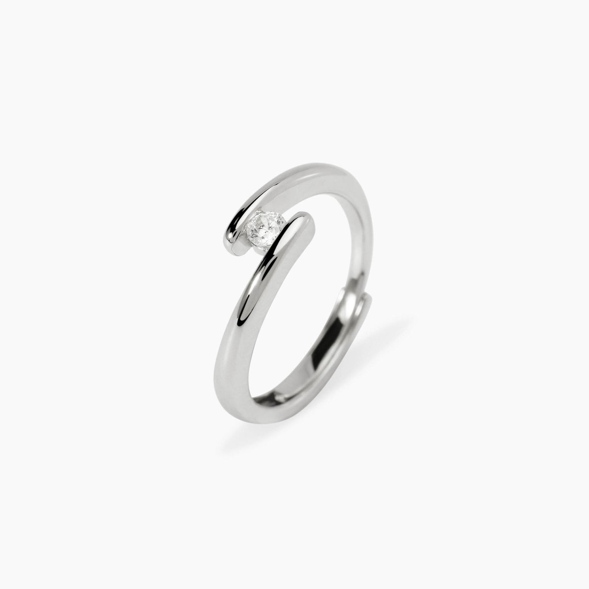 Anello solitario regolabile in argento rodiato con diamante lab-grown 0,1 ct.