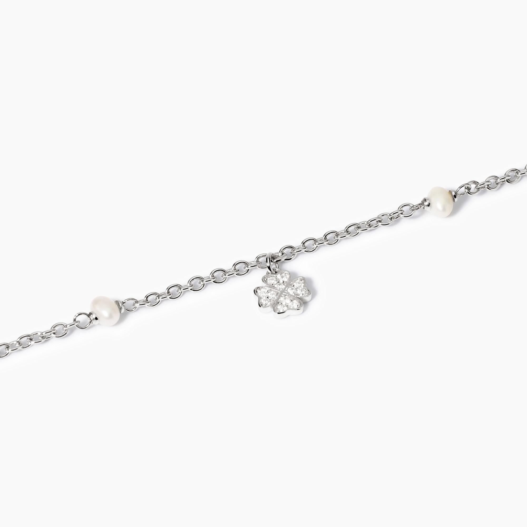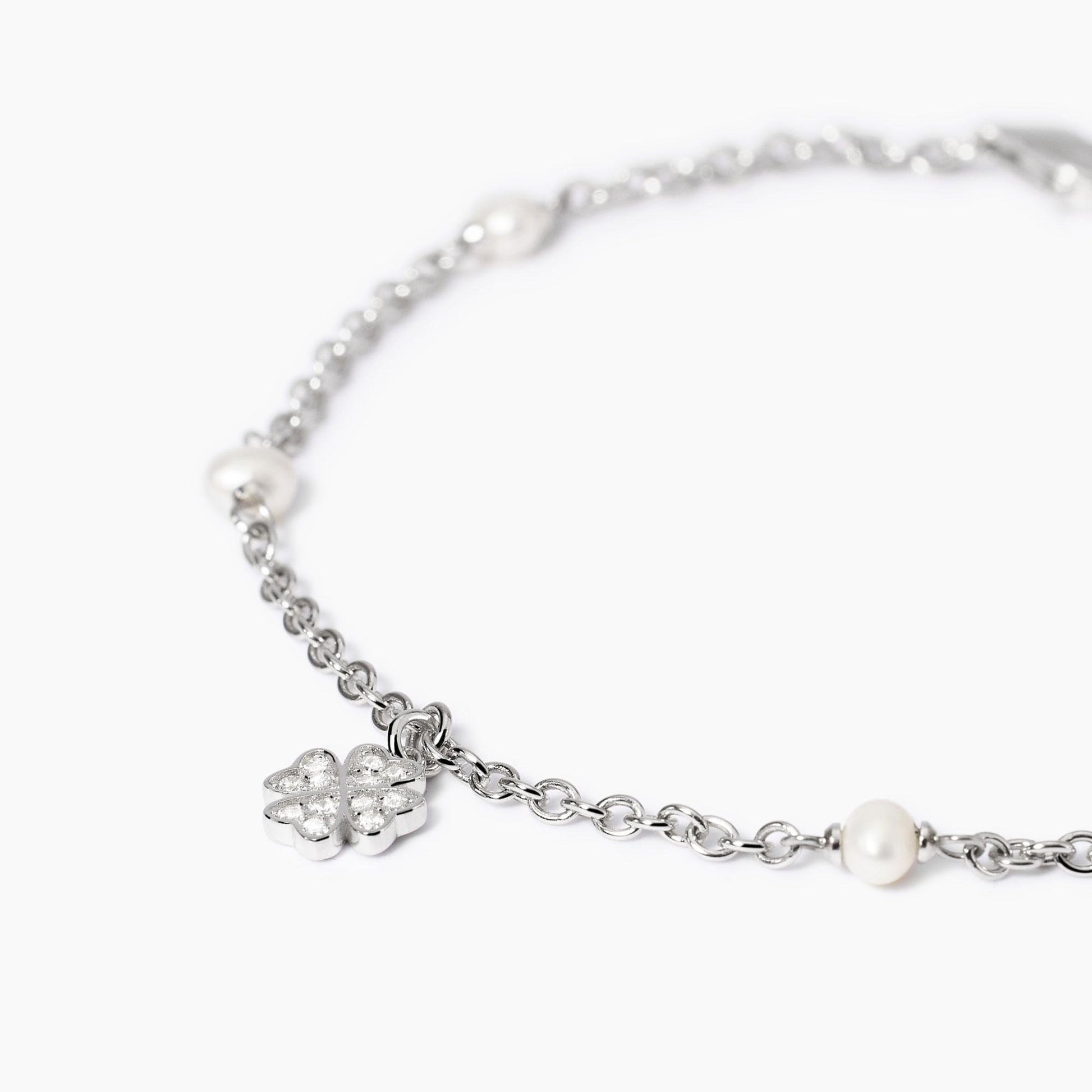 Bracciale con Perle Coltivate e Ciondolo Quadrifoglio Mabina