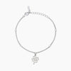 Bracciale regolabile da donna in argento rodiato con catena forzatina, ciondolo quadrifoglio e zirconi.