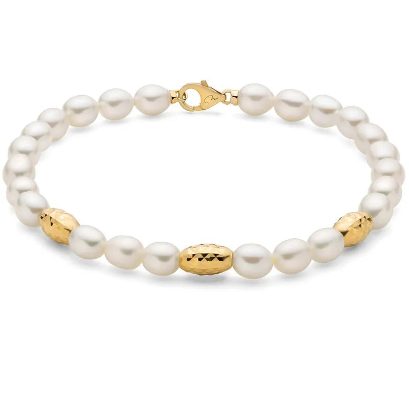 Bracciale Pepite di Perle 5-5,5 con tre Elementi in Argento Dorato Diamantato Miluna