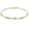 Le perle Oriente dalla forma allungata firmano la collezione Pepite di perle. In questo bracciale le perle sono alternate da elementi in argento dorato con effetto diamantato, per donare luce e preziosità al gioiello.