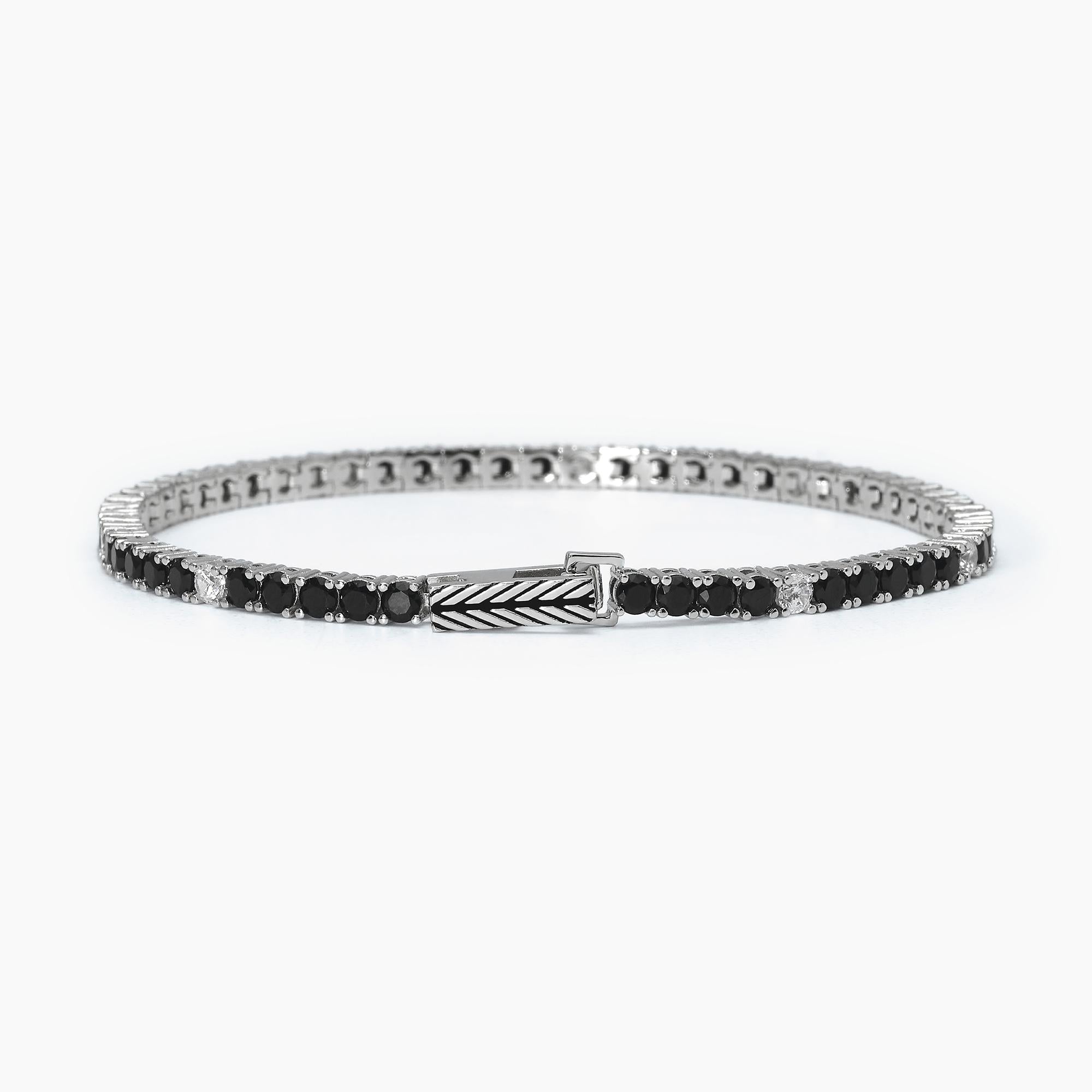 Bracciale tennis da uomo in argento rodiato con zirconi bianchi.