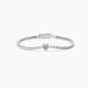 Bracciale tennis in argento rodiato con zirconi bianchi e acquamarina sintetica taglio cuore.