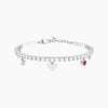 Bracciale regolabile in acciaio con tennis di cristalli e ciondoli cuore multicolor di diverse dimensioni e materiali.