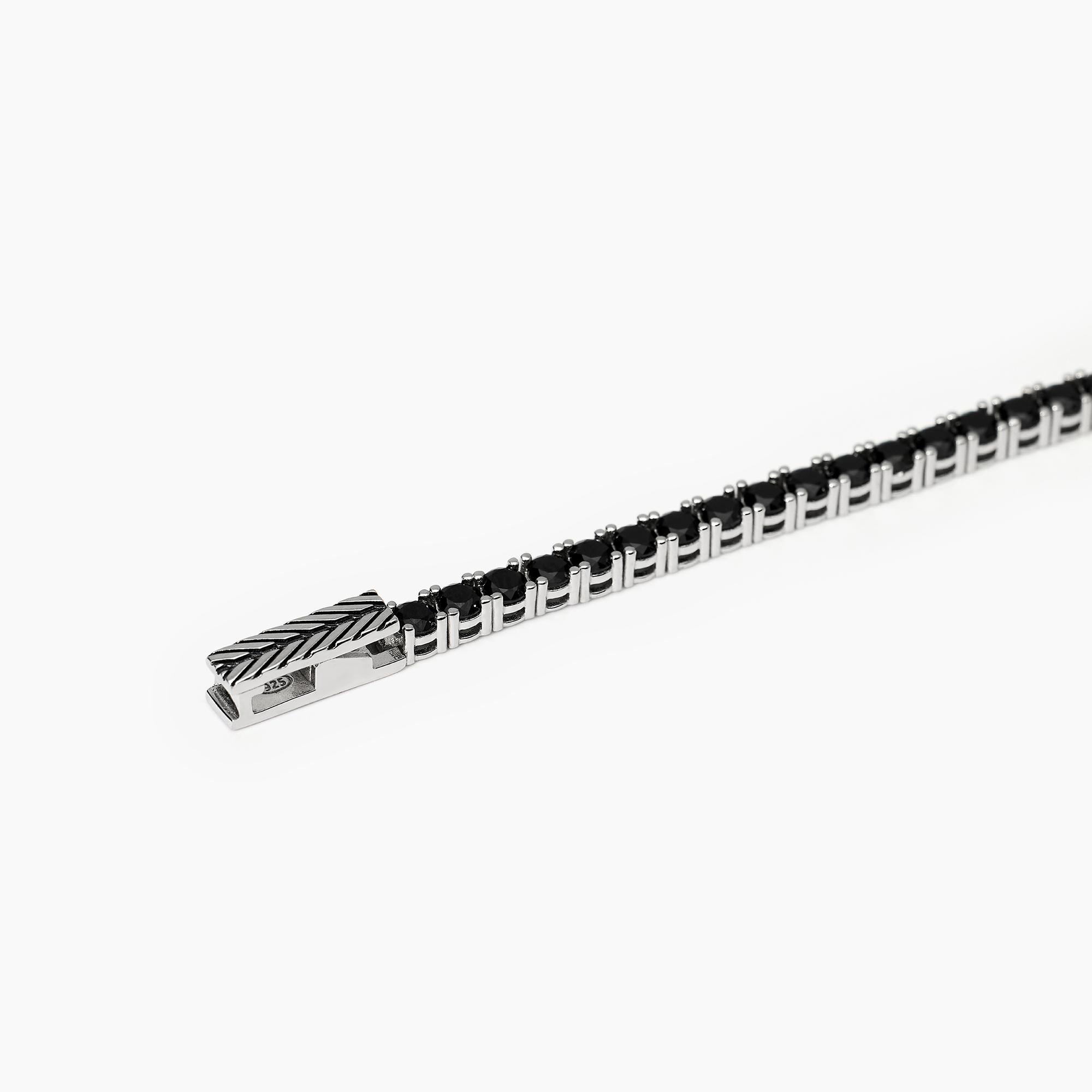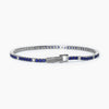 Bracciale tennis da uomo in argento rodiato con zirconi bianchi e blu.