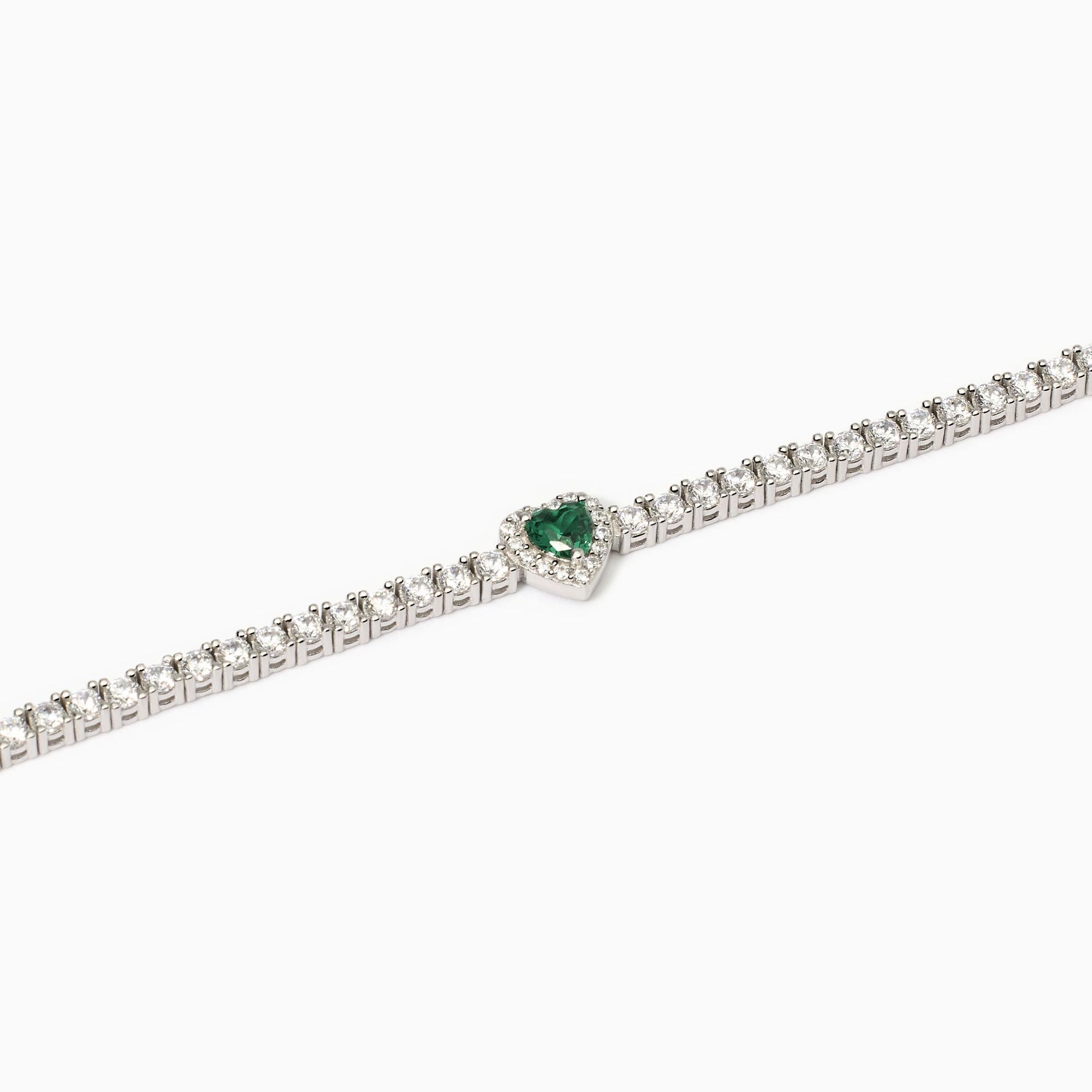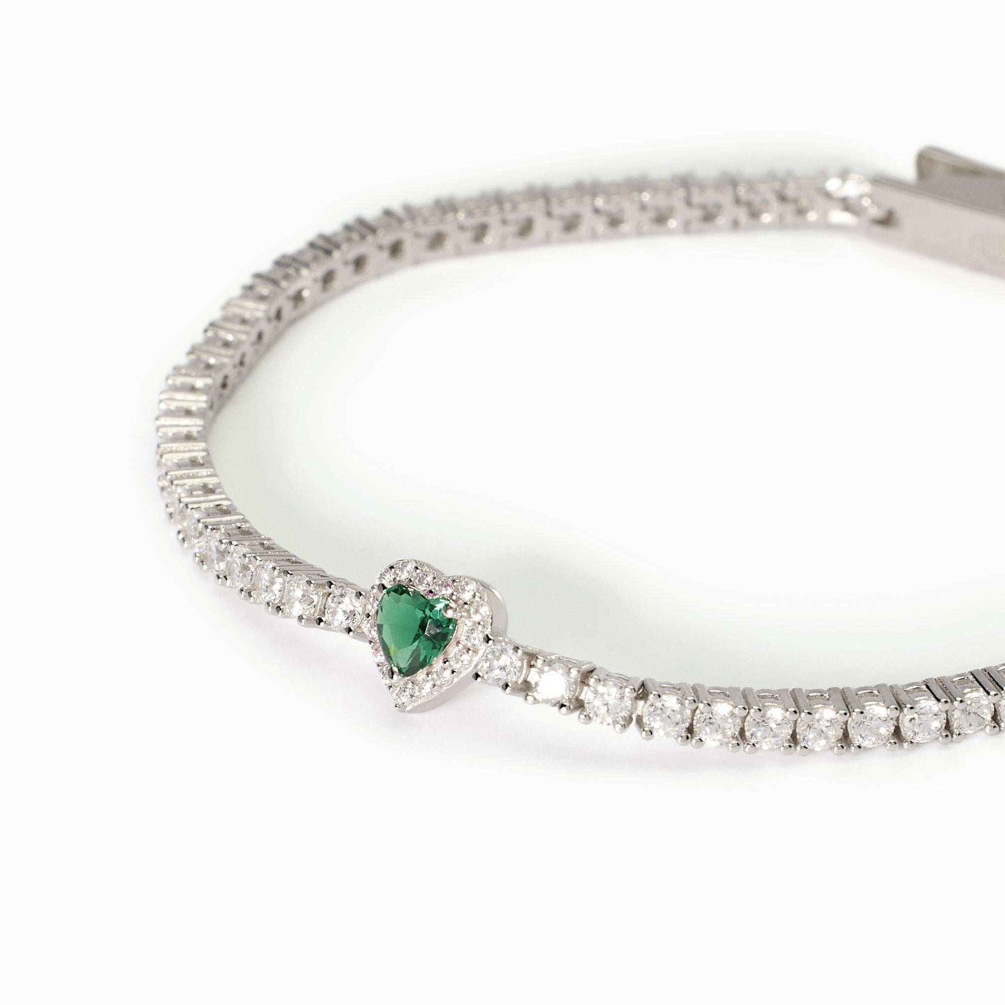 Bracciale tennis da donna in argento rodiato con pietra sintentica centrale taglio cuore e zirconi.