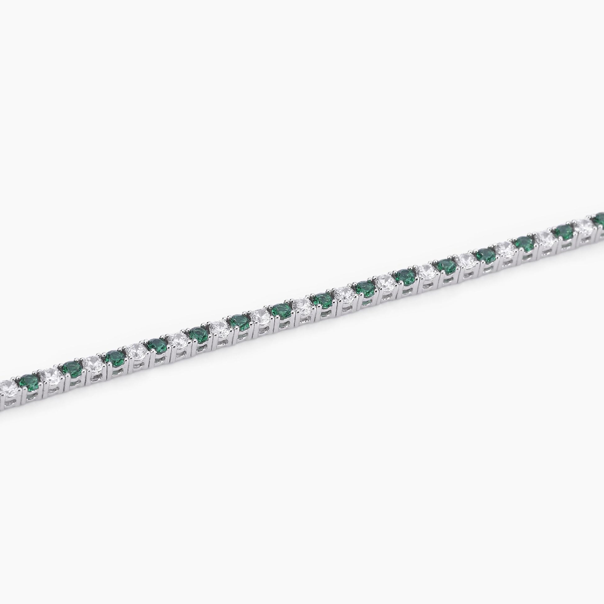 Bracciale tennis in argento con smeraldi sintetici e zirconi.