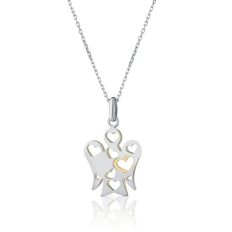 Collana Con Pendente Angelo con Cuori Double Face In Oro Bianco E Giallo Roberto Giannotti