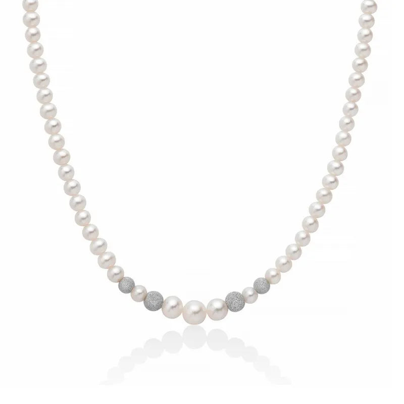 Collana di Perle Oriente a Scalare con Sfere in Oro Bianco Diamantate Miluna