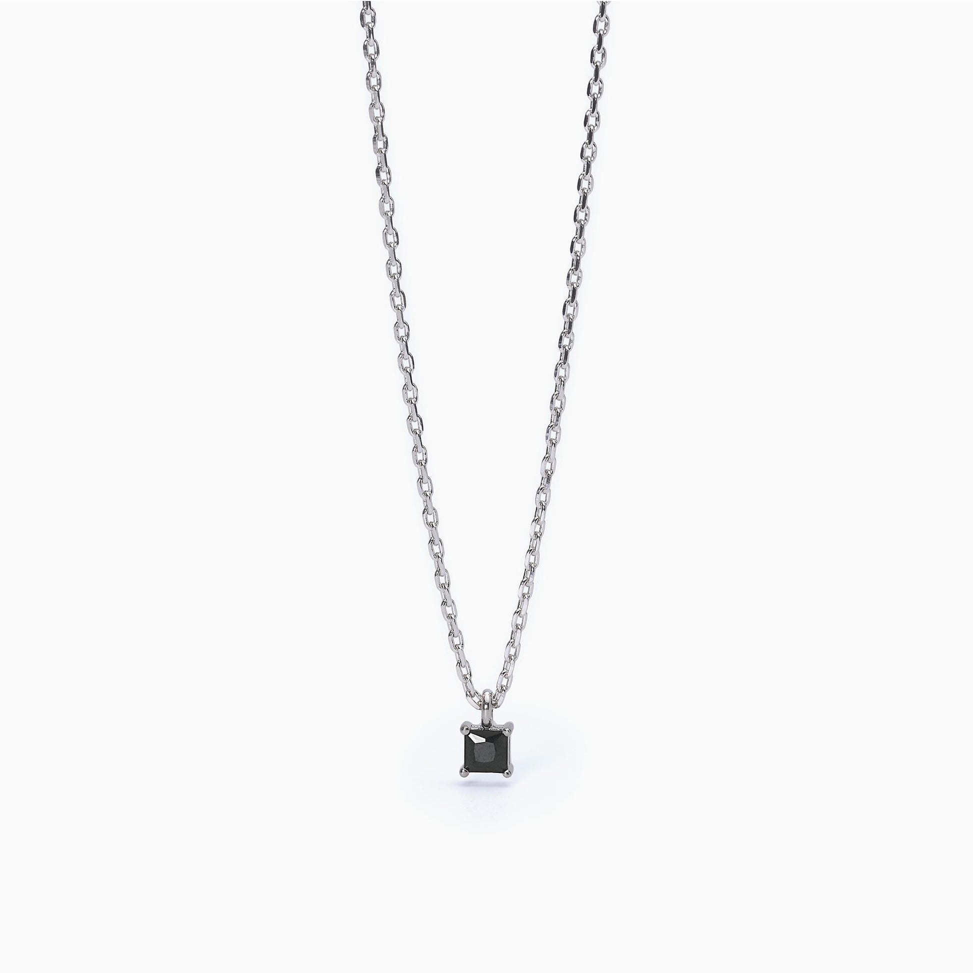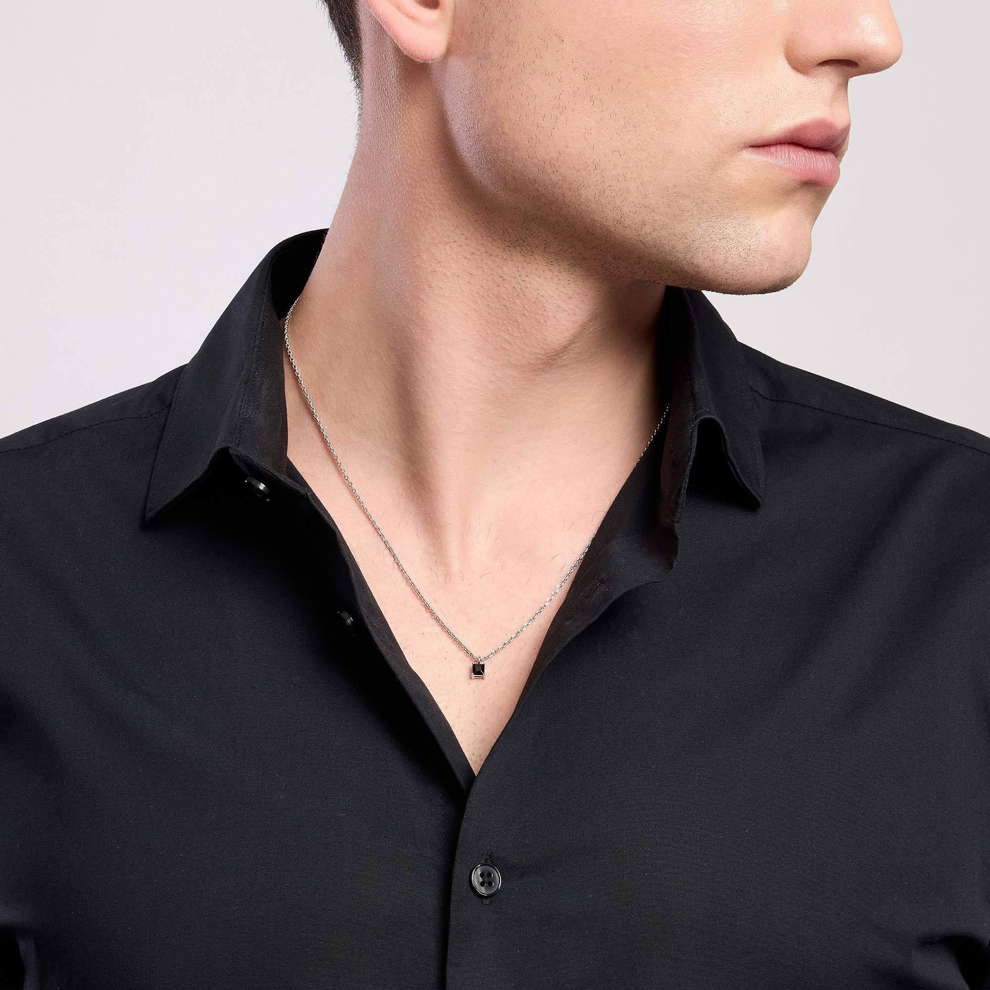 Collana da uomo in argento rodiato con catena forzatina e pendente con zircone nero.