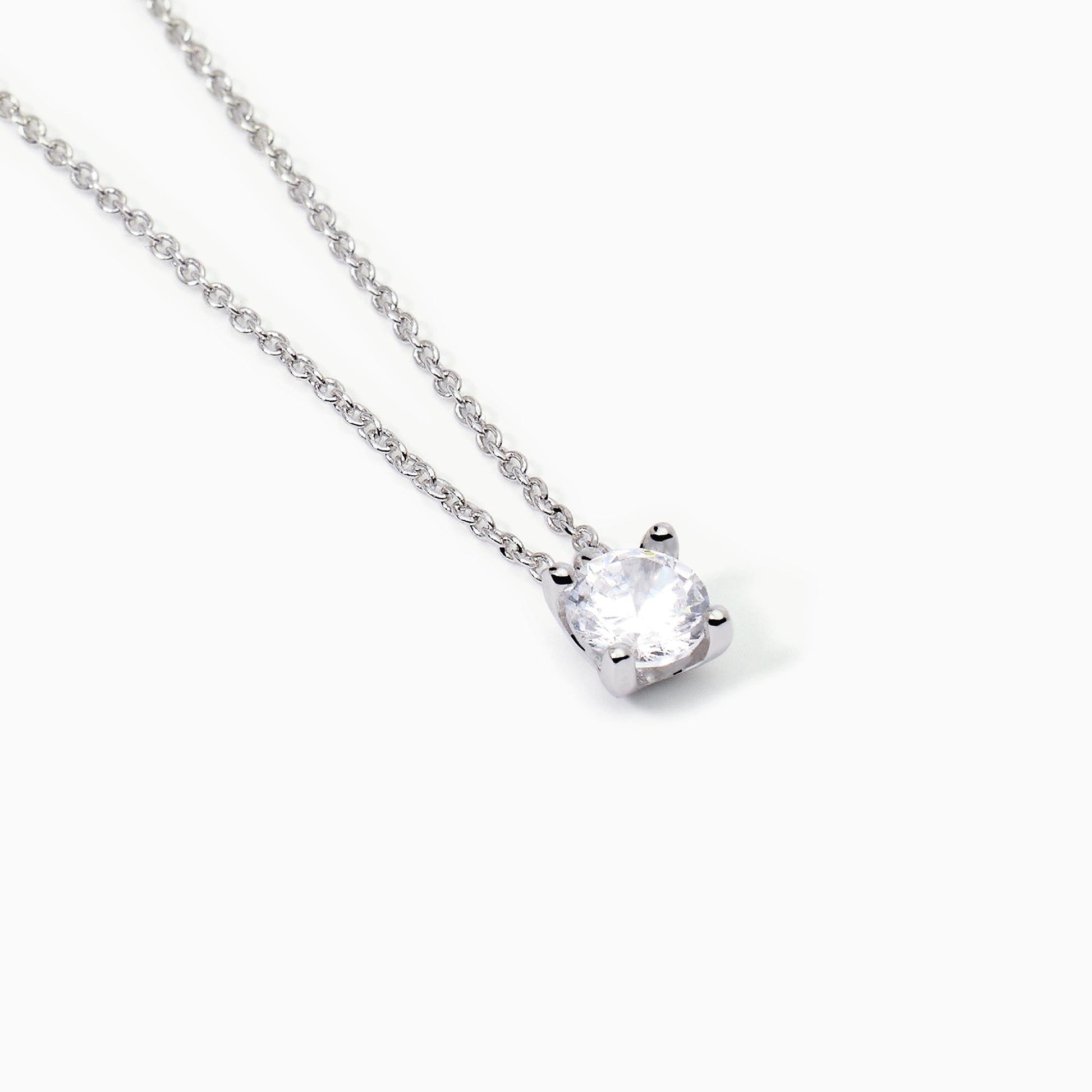 Girocollo da donna in argento rodiato con catena forzatina e ciondolo pendente con zircone bianco.