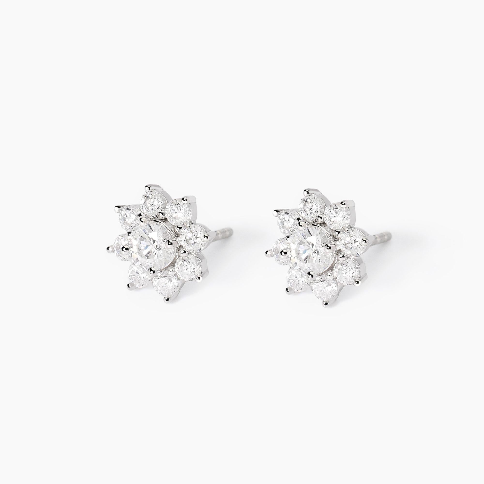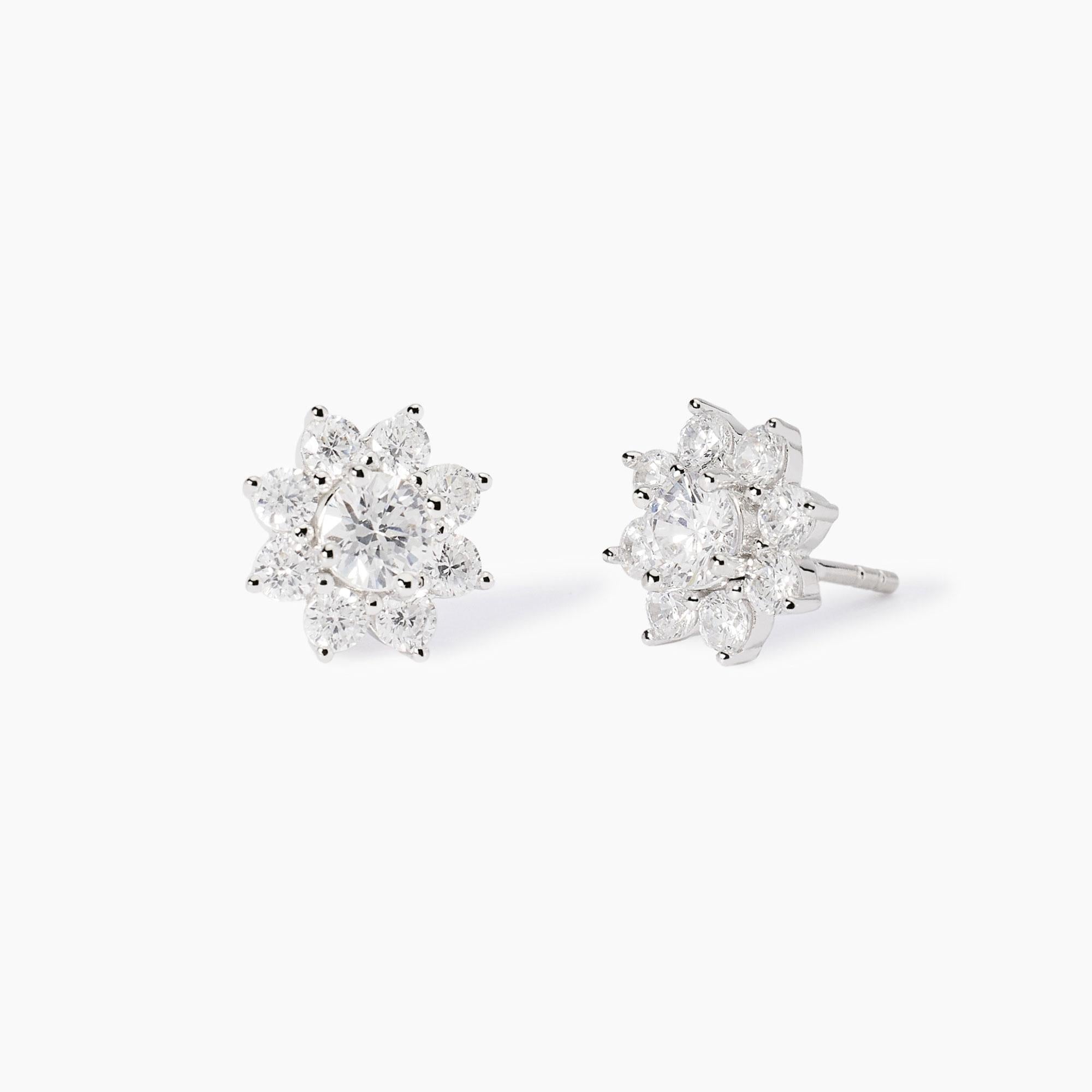 Orecchini da donna a lobo in argento rodiato taglio girasole in zirconi bianchi.