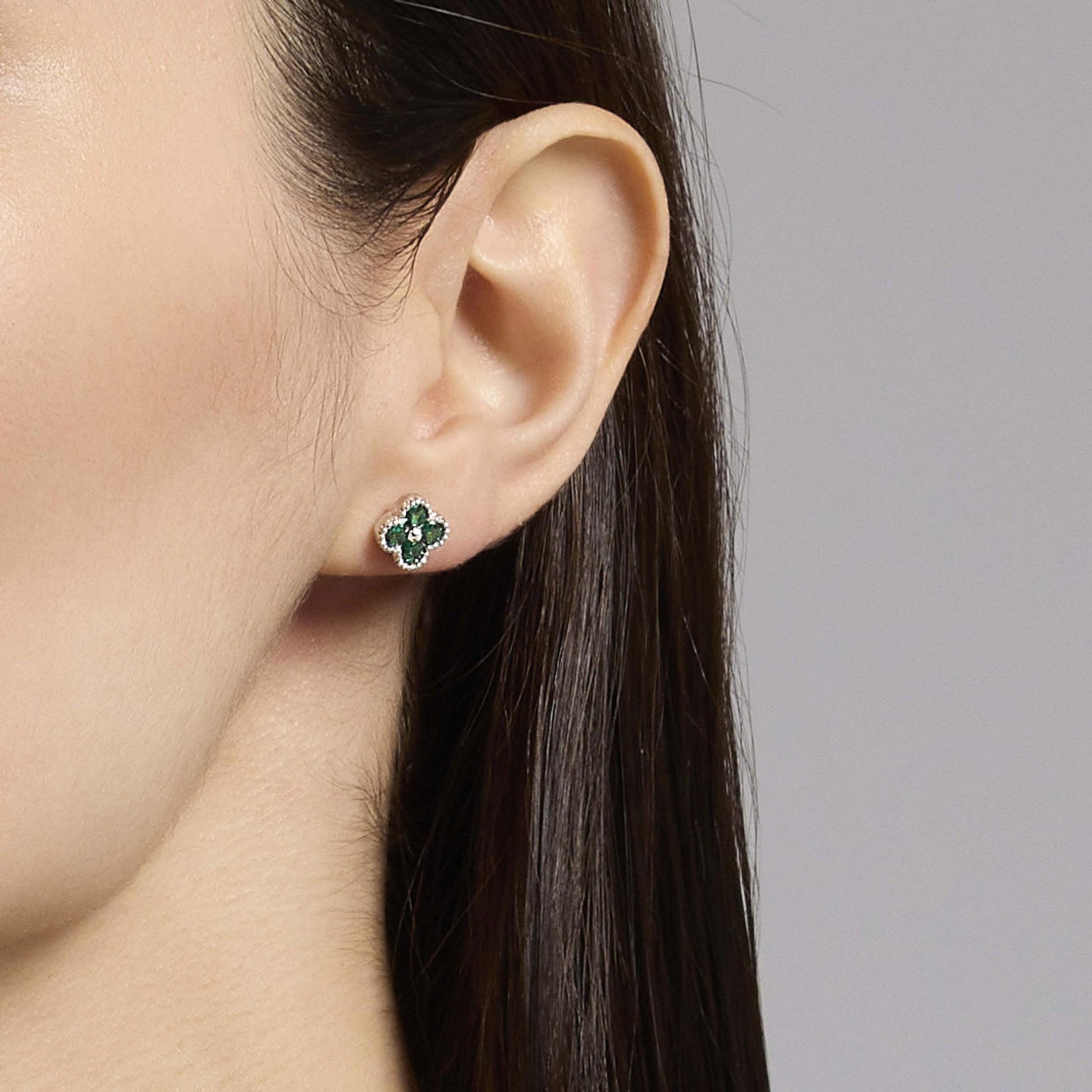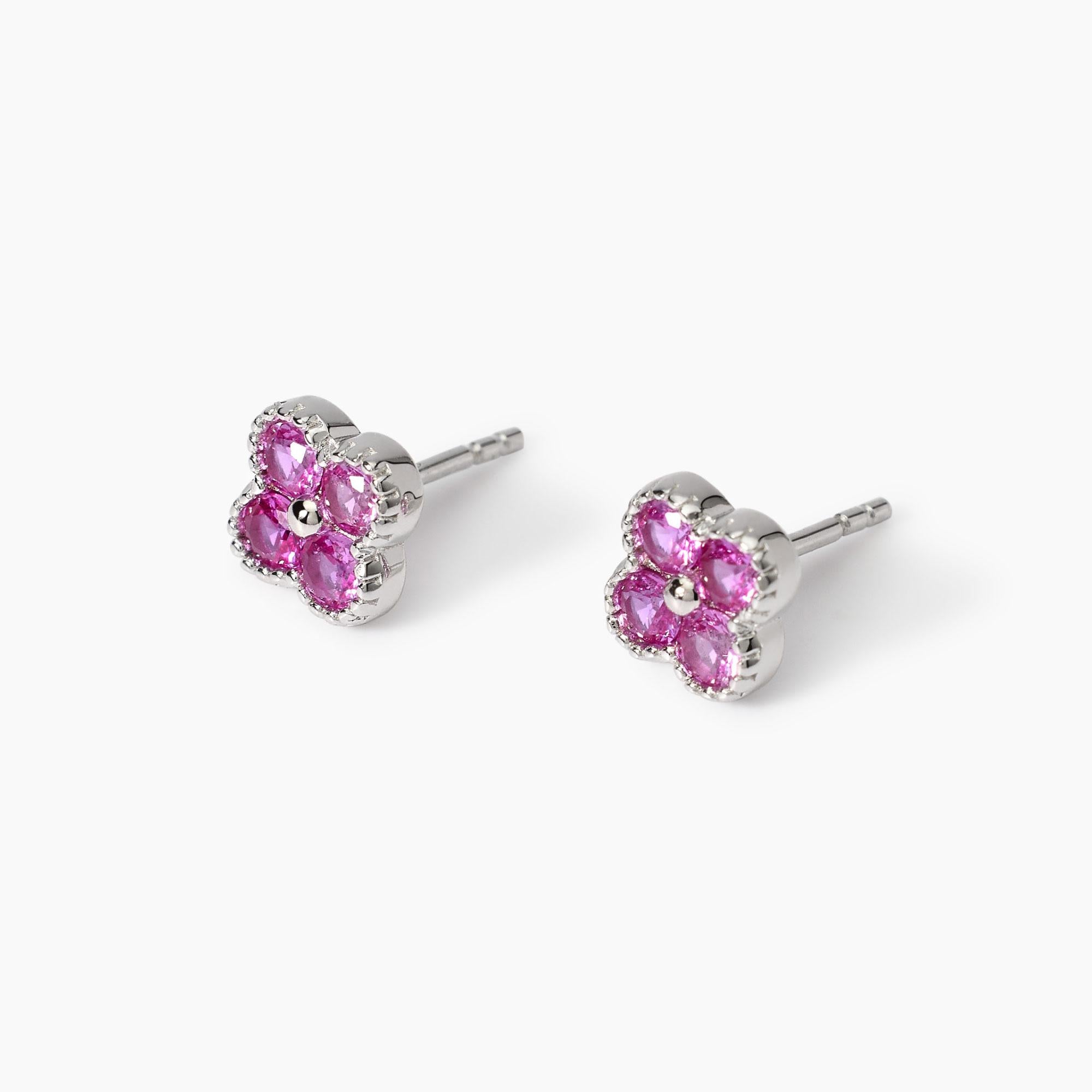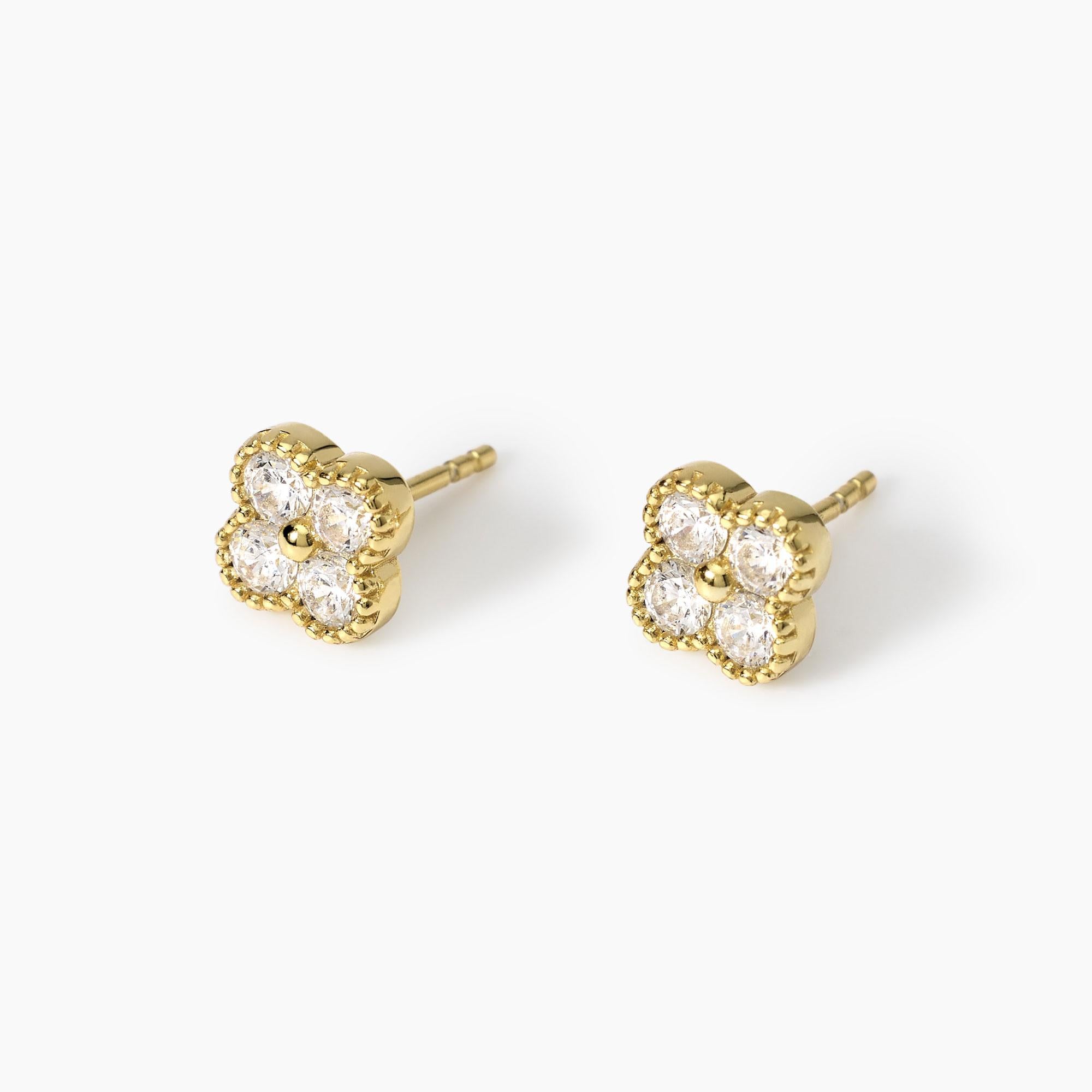 Orecchini a lobo in argento placcato oro 18K con forma fiore in zirconi bianchi.
