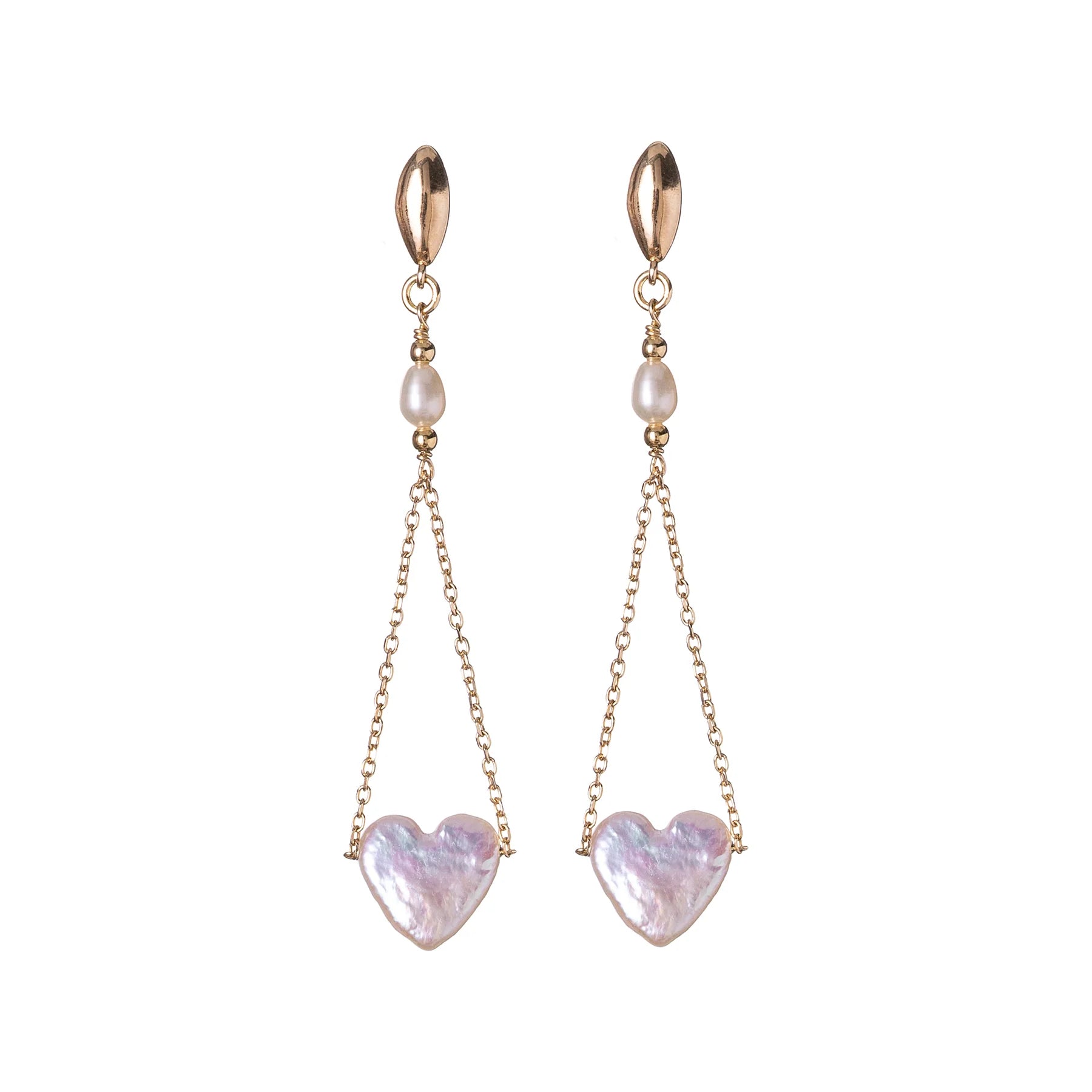 Orecchini pendenti a doppia catena in Argento 925 dorato con Ciondolo a forma di cuore in Perla Barocca.