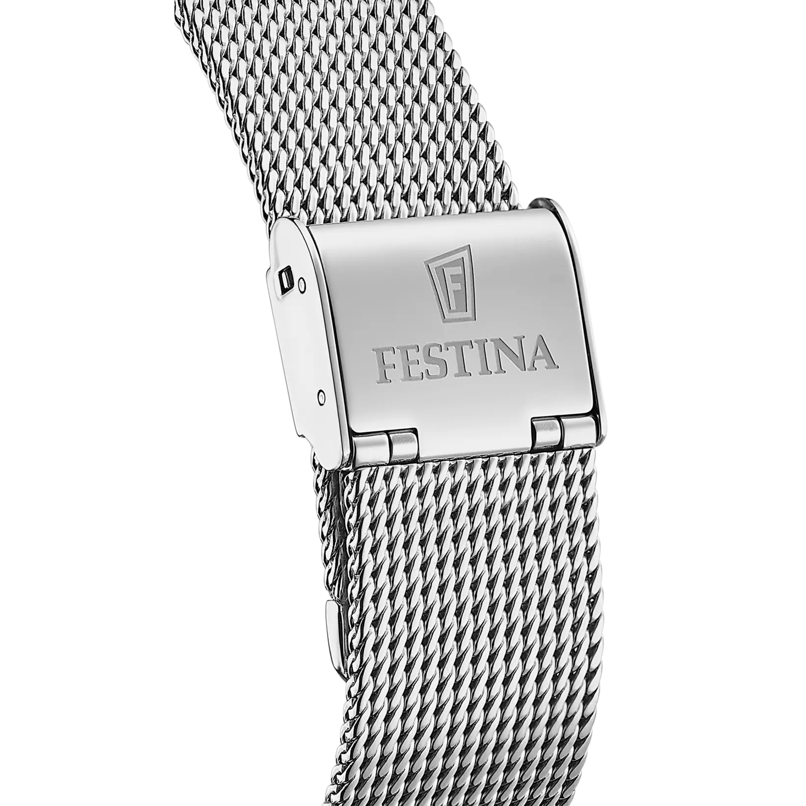 L'orologio Festina per donna è un vero gioiello dell'orologeria. La sua cassa in acciaio e vetro minerale, combinata con un cinturino in acciaio, lo rendono un accessorio di alta qualità e durata.