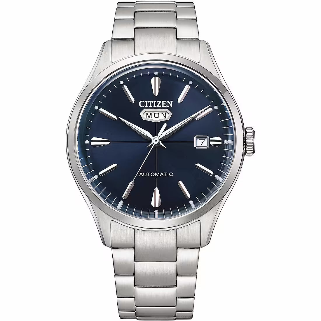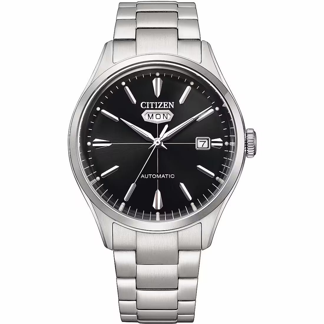 Meccanico a ricarica automatica con riserva di carica di 40 ore. Indicazione giorno/data con finestra sul quadrante a ore 12.