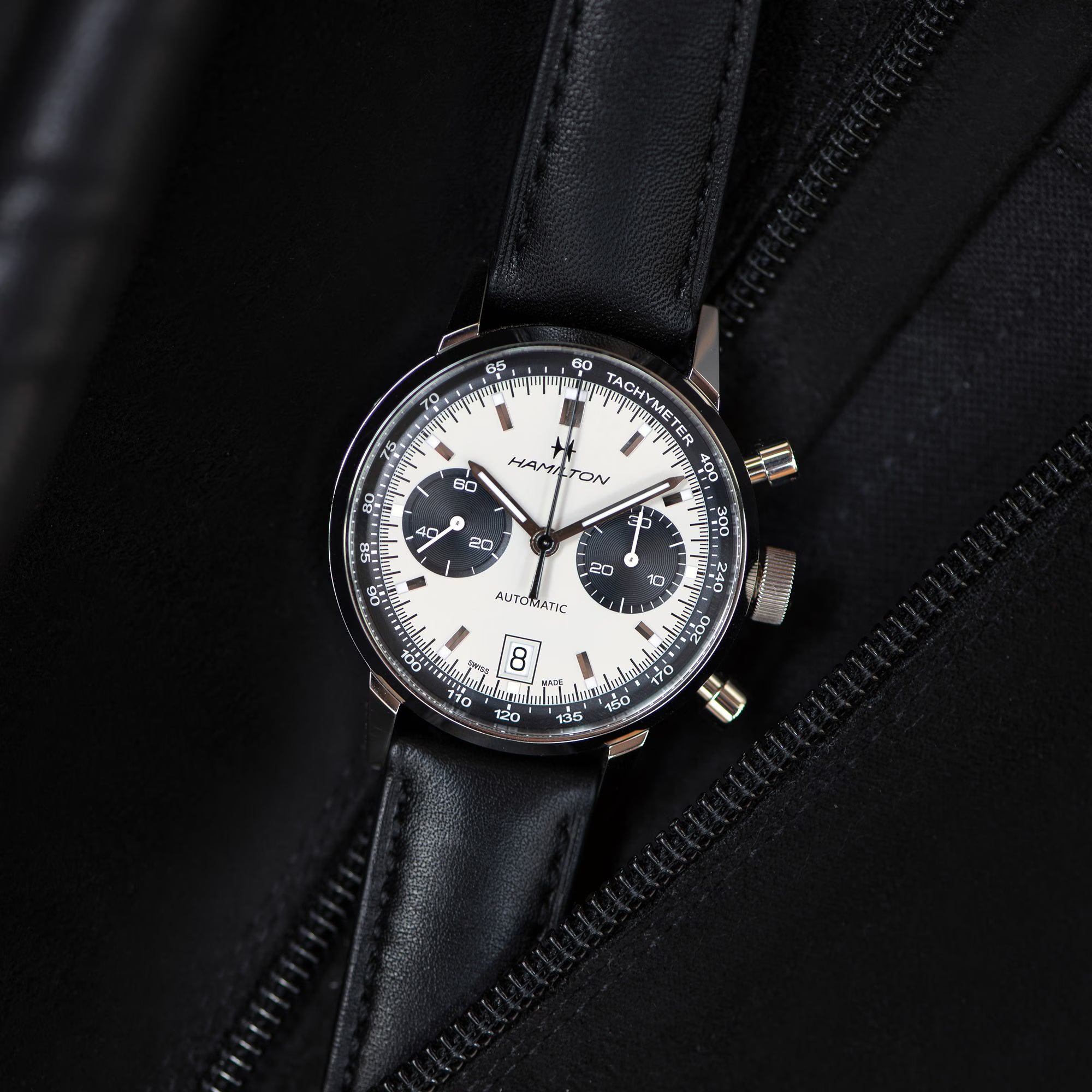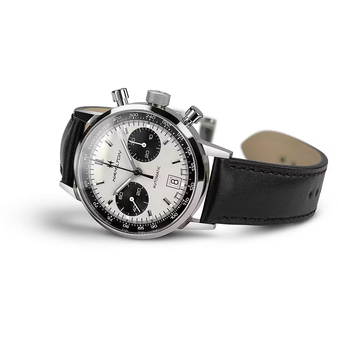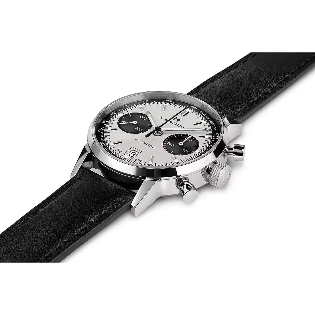 L’Intra-Matic Auto Chrono di Hamilton è una rivisitazione in chiave moderna di una creazione iconica del 1968 per un look allo stesso tempo classico e sportivo. Combinando un autentico stile anni ‘60 con l’esclusivo movimento automatico H-31, lo speciale quadrante effetto “panda” attirerà sicuramente gli sguardi di tutti.
