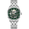 Connubio perfetto di tradizione e innovazione, il Jazzmaster Skeleton 40 mm permette di ammirare il movimento automatico svizzero in azione. Il quadrante scheletrato, con la sua straordinaria tonalità verde impero, rivela il movimento automatico H-10-S, con 25 rubini e un’impressionante riserva di carica di 80 ore. Questo iconico segnatempo è abbinato a un elegante bracciale in acciaio, che incarna dinamismo moderno e fascino intramontabile.