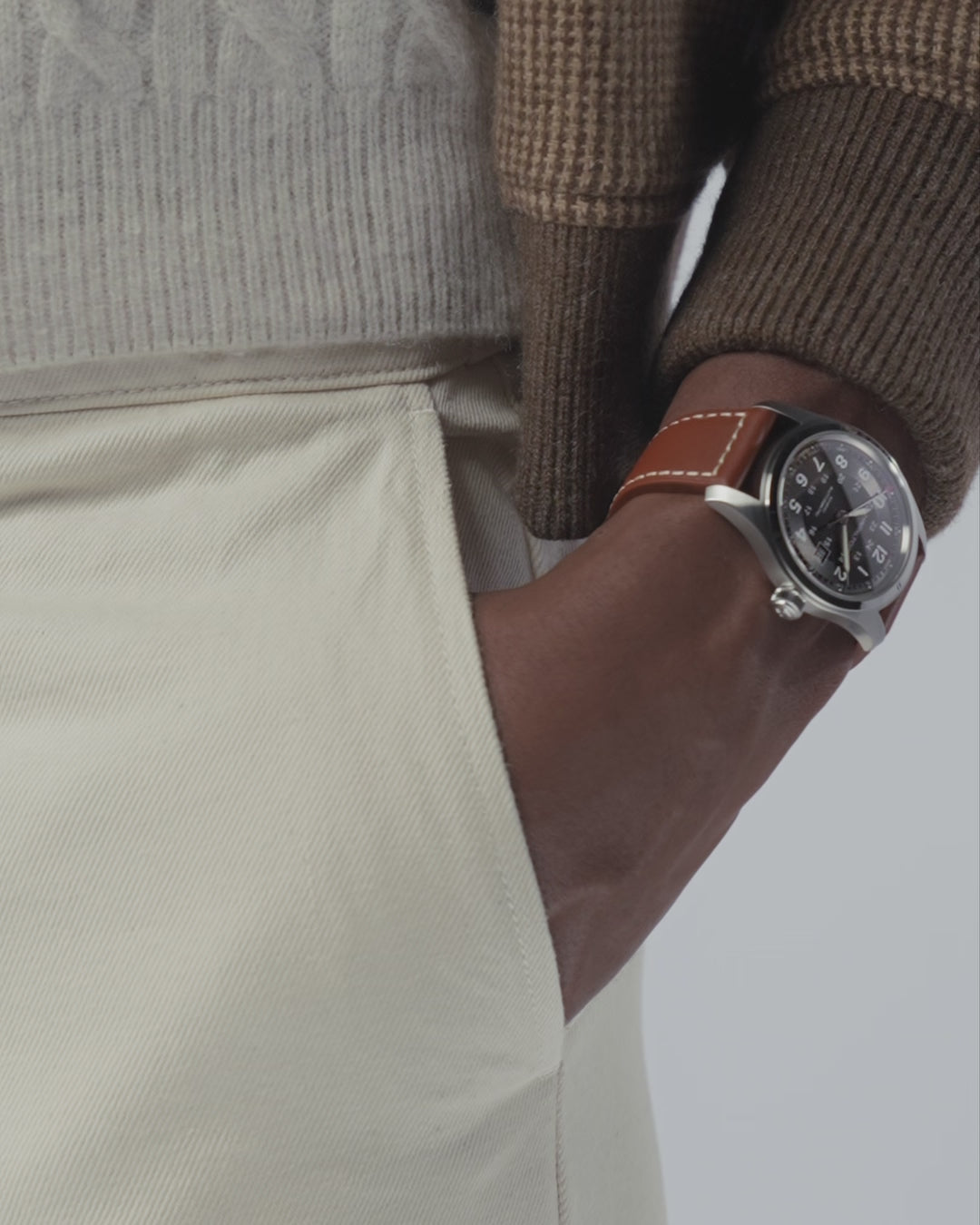 Per una scalata in montagna, una passeggiata nel verde o nel caos della città, il Khaki Field Auto soddisferà ogni tua esigenza. Con l'esclusivo calibro automatico H-10 che garantisce una riserva di carica fino a 80 ore, non ti deluderà.