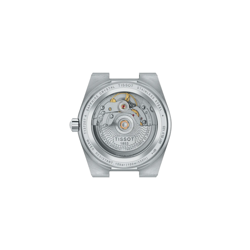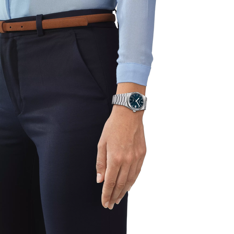 Tissot PRX 35mm Powermatic 80, un perfetto equilibrio tra fascino senza tempo e artigianato moderno. Questo orologio da 35 mm vanta una cassa in acciaio di alta qualità e un accattivante quadrante blu, ispirato al suo famoso predecessore del 1978. Il caratteristico motivo del quadrante waffle aggiunge un ulteriore livello di eleganza al modello automatico. Resistente all'acqua fino a 100 metri e dotato di spirale Nivachron™, il PRX è la scelta ideale per gli esperti di stile. Il bracciale in acciaio satinato con chiusura déployante a tripla lama in acciaio garantisce comfort per tutto il giorno . Distinguiti con il Tissot PRX 35mm Powermatic 80 in blu.