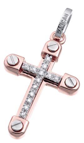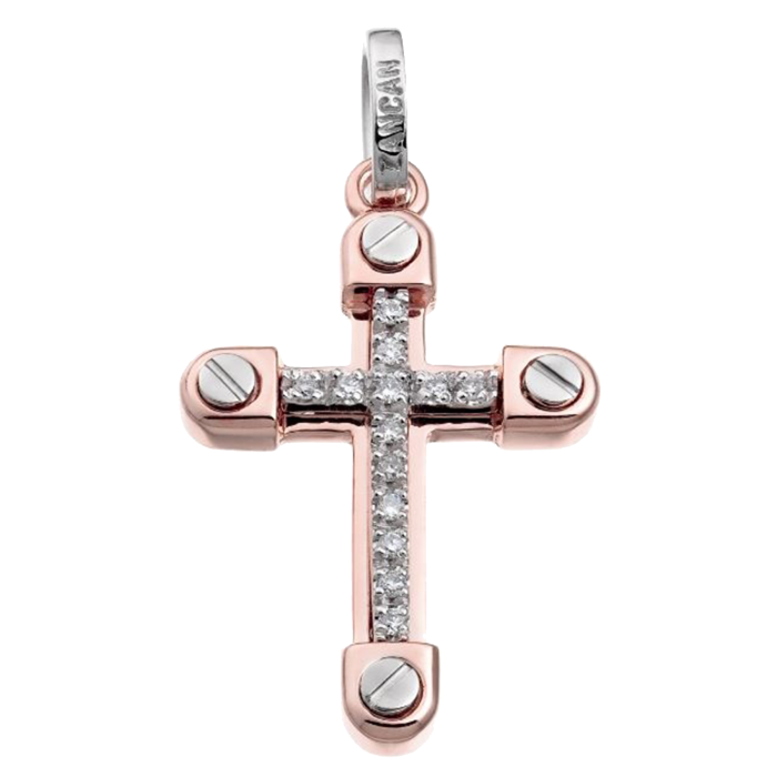 Ciondolo a Croce Zancan in Oro Rosa ed Oro Bianco 18KT con Diamanti Bianchi.