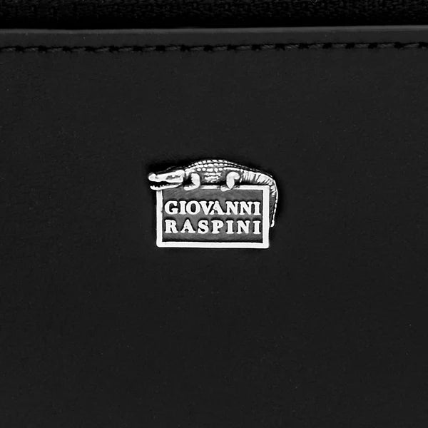 Realizzato in pregiata pelle di vitello pieno fiore liscia nera, questa pouch è il modello più grande della collezione, versatile e ideale per chi desidera spazio senza rinunciare allo stile. La pouch, dotata di un comodo laccio da polso staccabile in pelle e metallo, si chiude con una robusta cerniera, la quale garantisce che tutti gli oggetti contenuti siano al sicuro. All'interno è presente un unico grande scomparto, munito di 3 tasche aggiuntive per carte di credito. Questo prodotto rappresenta la massima eccellenza artigianale che da sempre contraddistingue il brand Giovanni Raspini, ed è impreziosito da un caratteristico elemento in Argento 925, realizzato in fusione a cera persa e raffigurante il logo del brand in miniatura, sovrastato dall'iconico coccodrillo. Lavorato interamente a mano in Toscana.